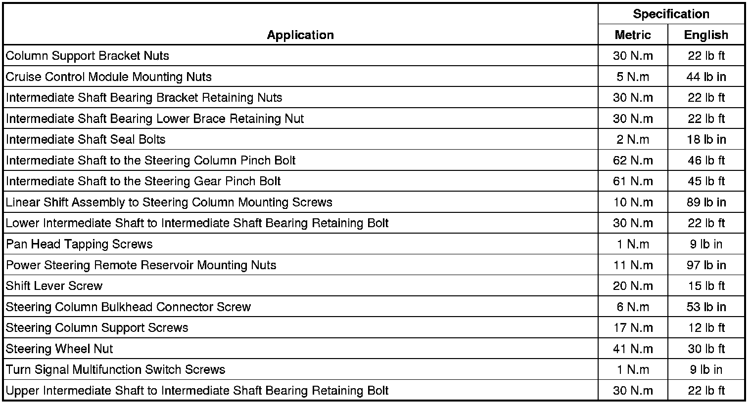 Fastener Tightening Specifications