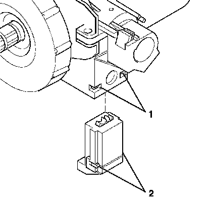 4. Insert the ignition switch into the lock cylinder housing. The tabs (2) on the ignition switch MUST be seated inside the lock cylinder housing (1) for proper installation.