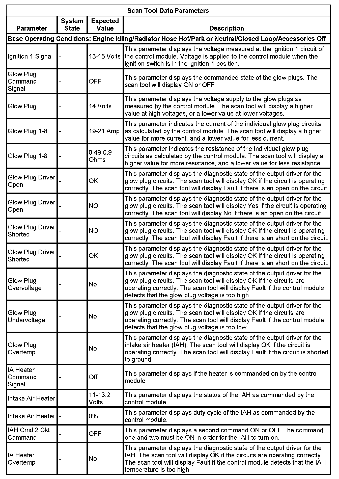 Glow Plug Control Module Scan Tool Information