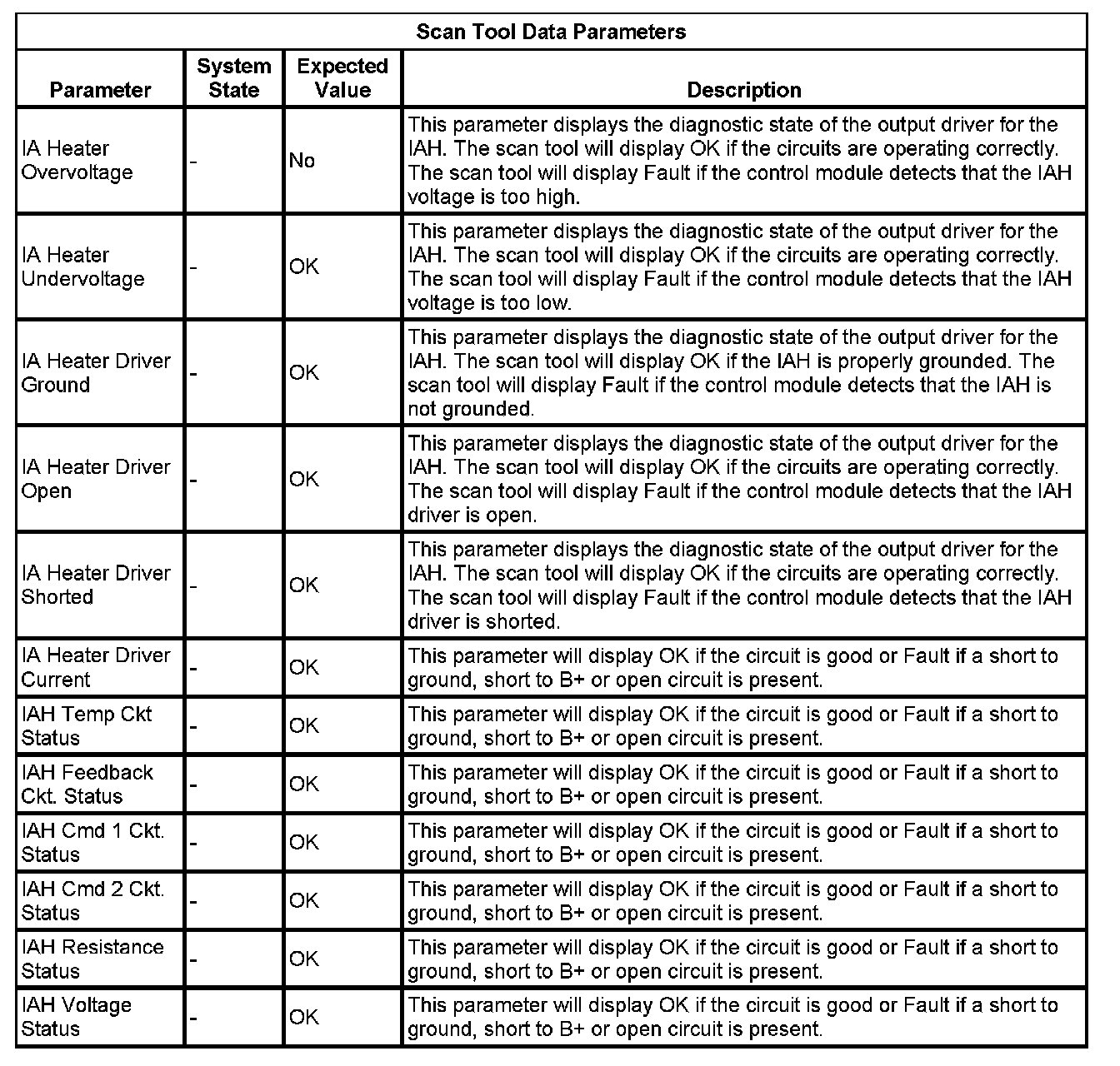 The GPCM Scan Tool Data List contains all glow plug control module related parameters that are available on the scan tool. The list is arranged in alphabetical order.