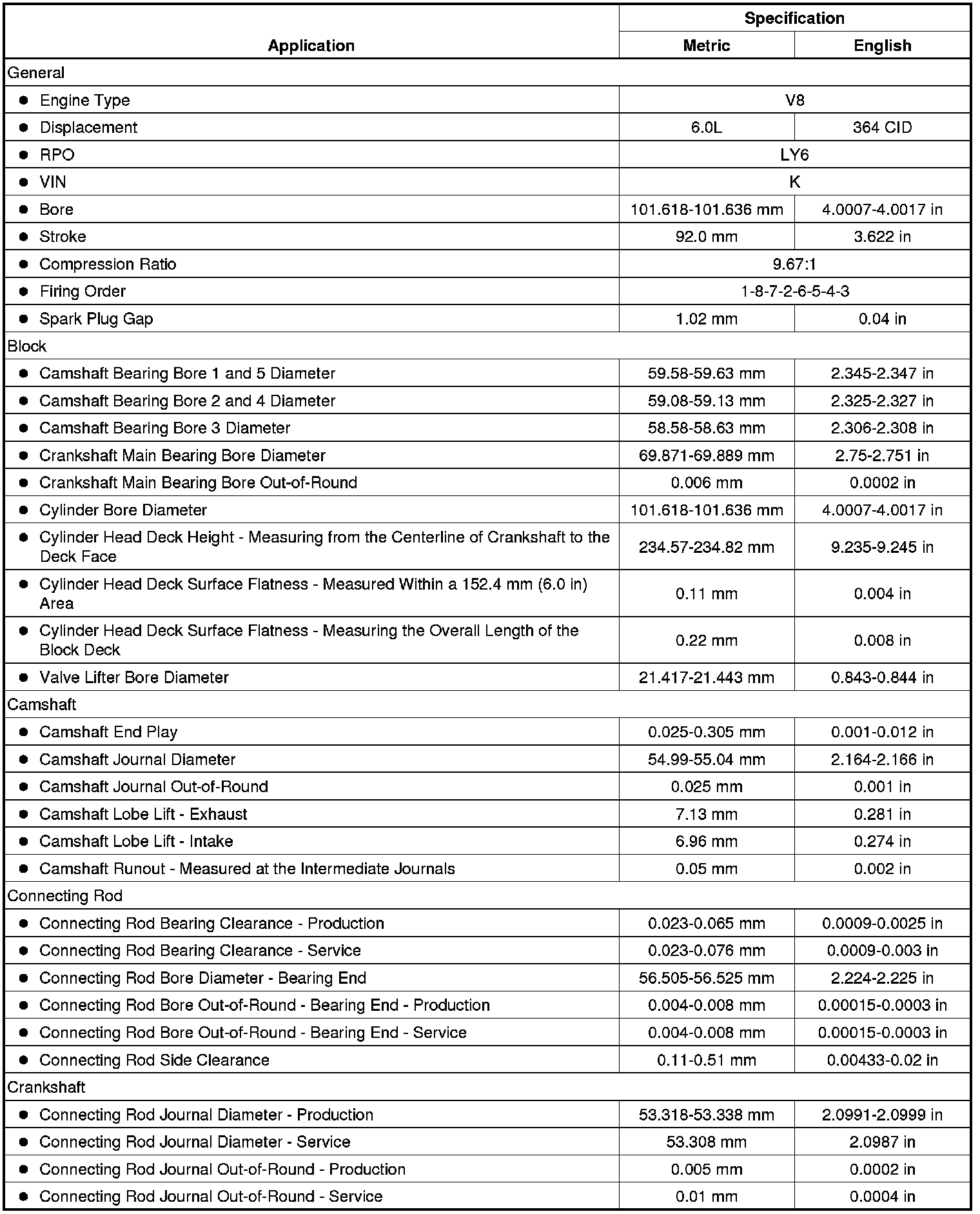 Engine Mechanical Specifications (RPO LY6 VIN K) (6.0L)