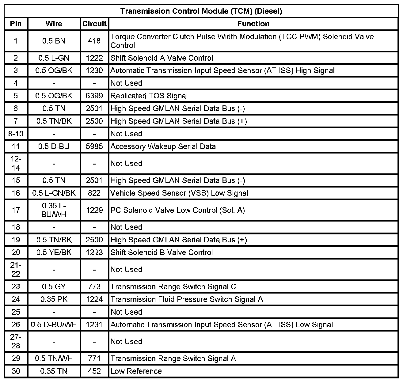 Transmission Control Module (TCM) (Diesel) (Pin 1 To 30):