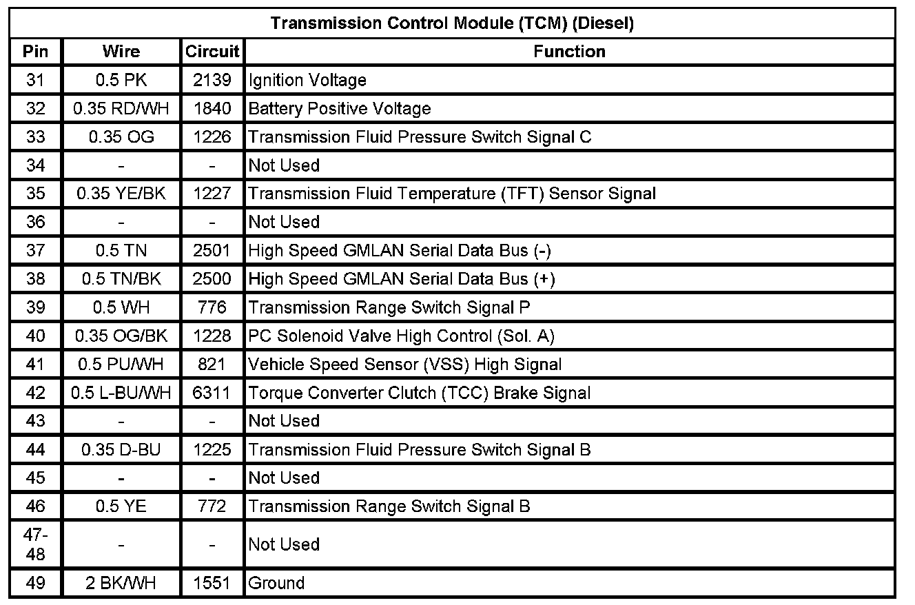 Transmission Control Module (TCM) (Diesel) (Pin 31 To 49):