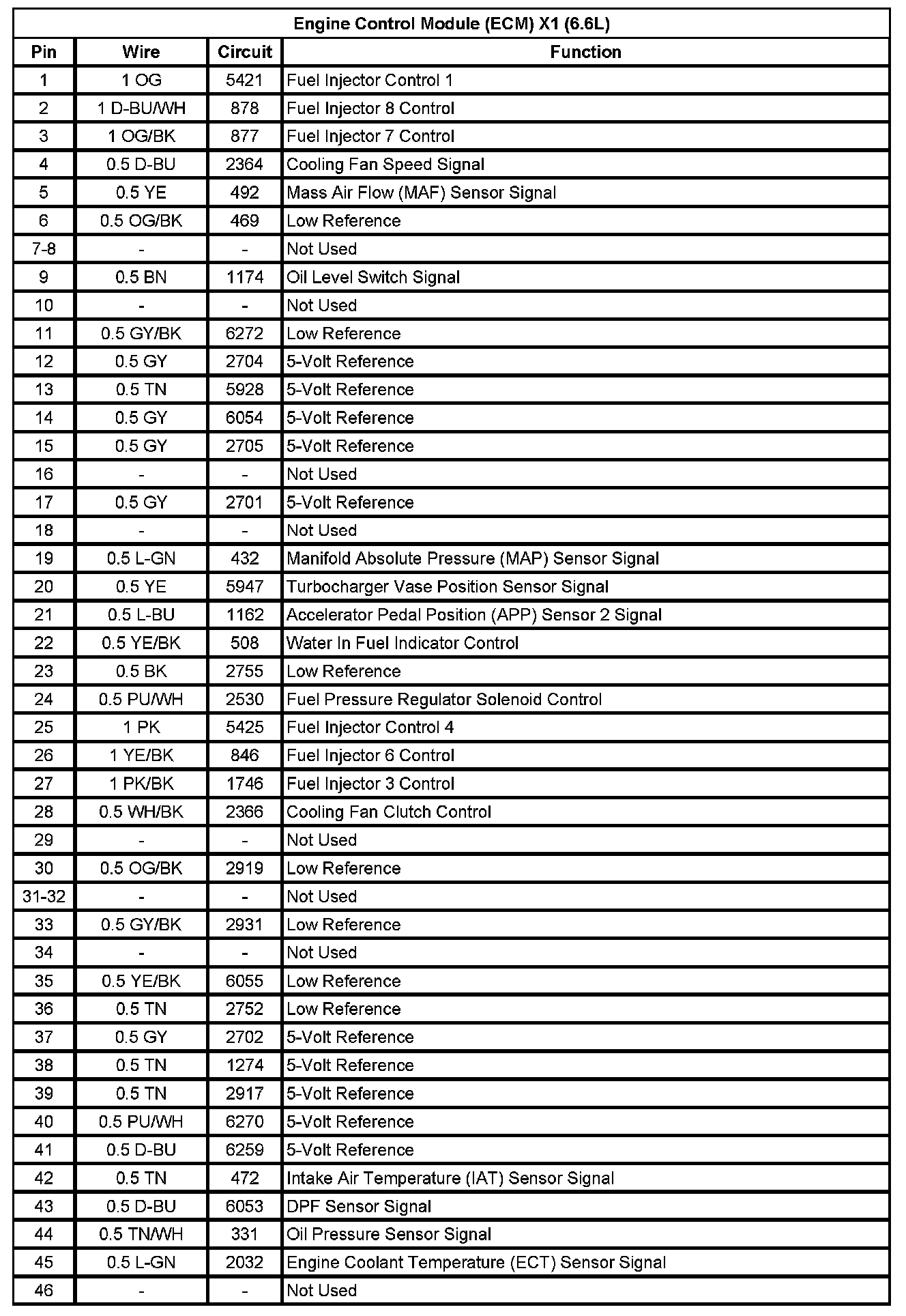 Engine Control Module (ECM) X1 (6.6L) (Pin 1 To 46):