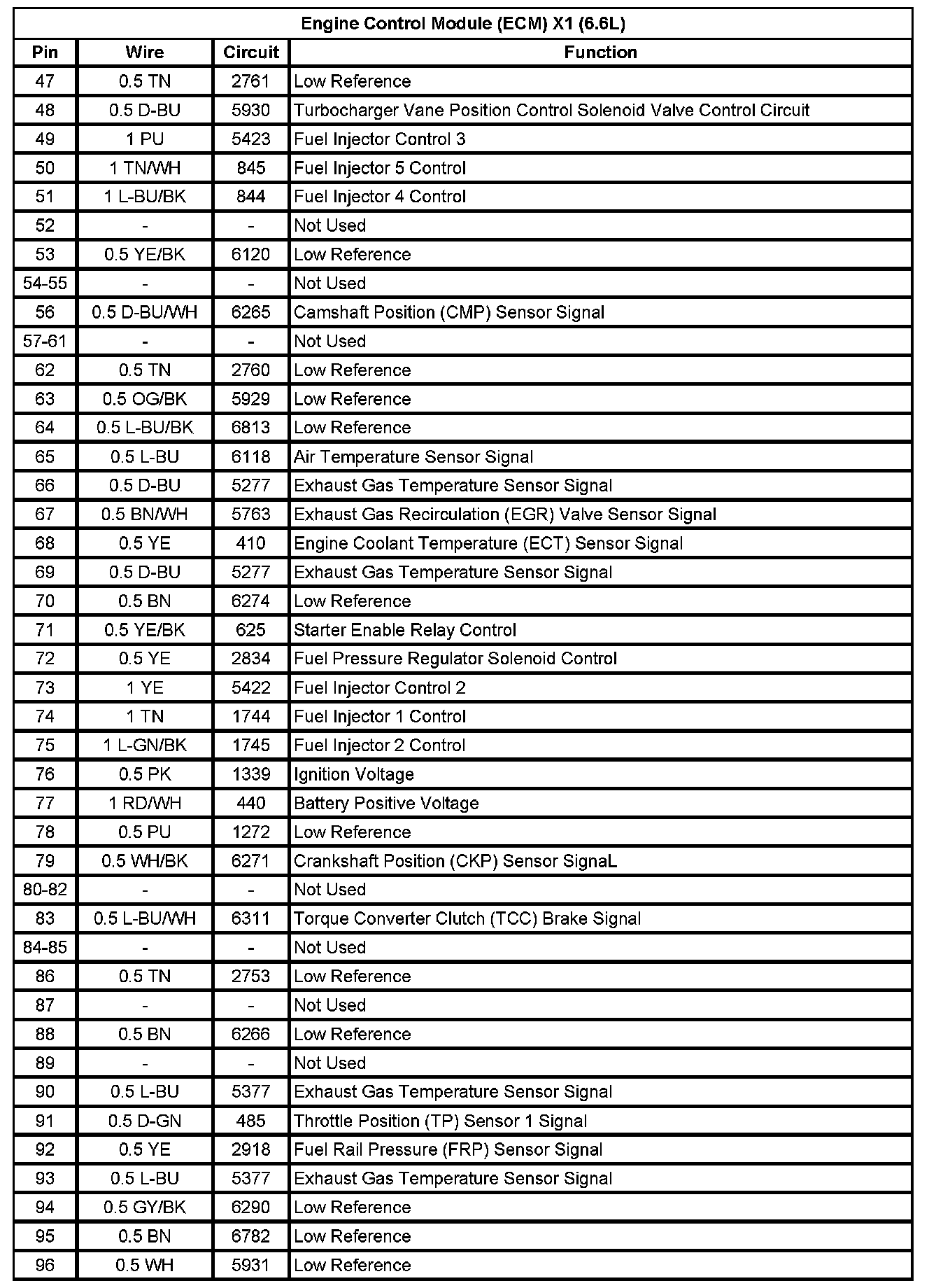 Engine Control Module (ECM) X1 (6.6L) (Pin 47 To 96):