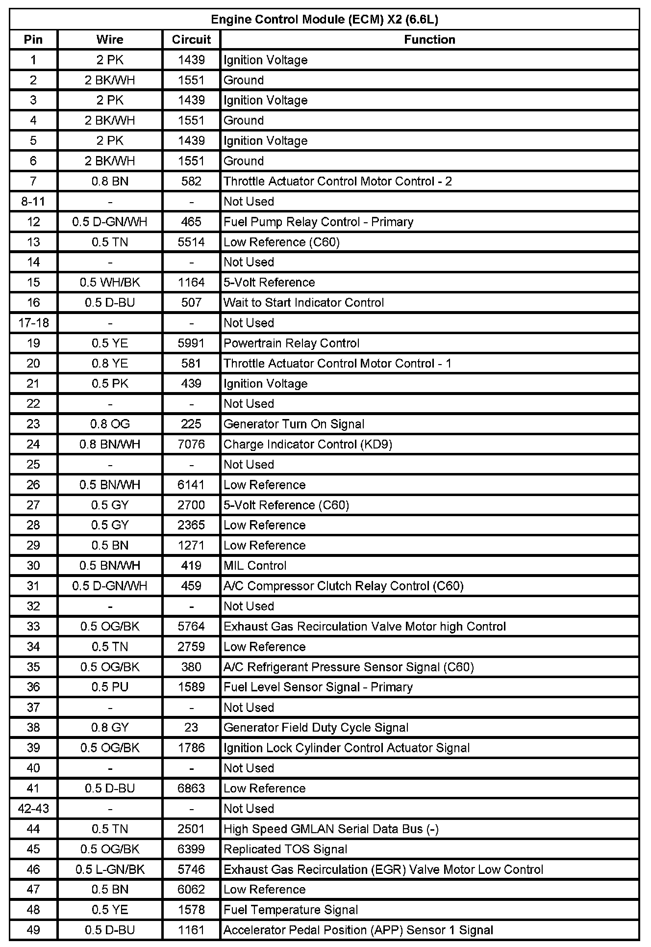 Engine Control Module (ECM) X2 (6.6L) (Pin 1 To 49):