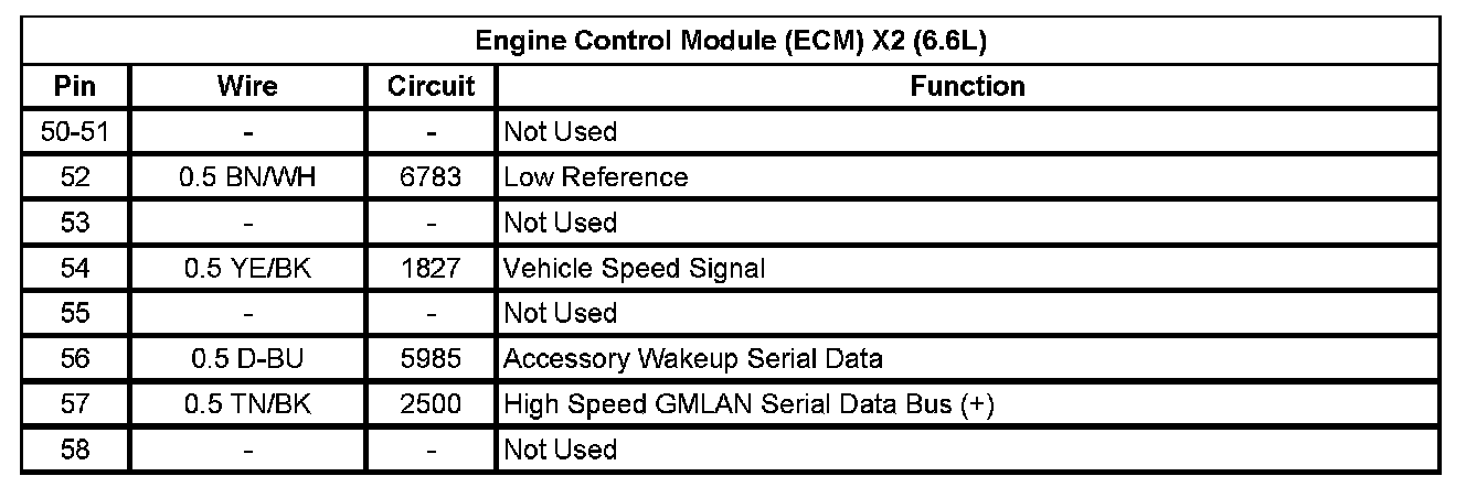 Engine Control Module (ECM) X2 (6.6L) (Pin 50 To 58):