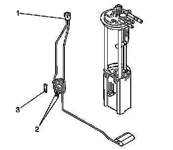 4. Squeeze the locking tangs (2) and remove the fuel level sensor.