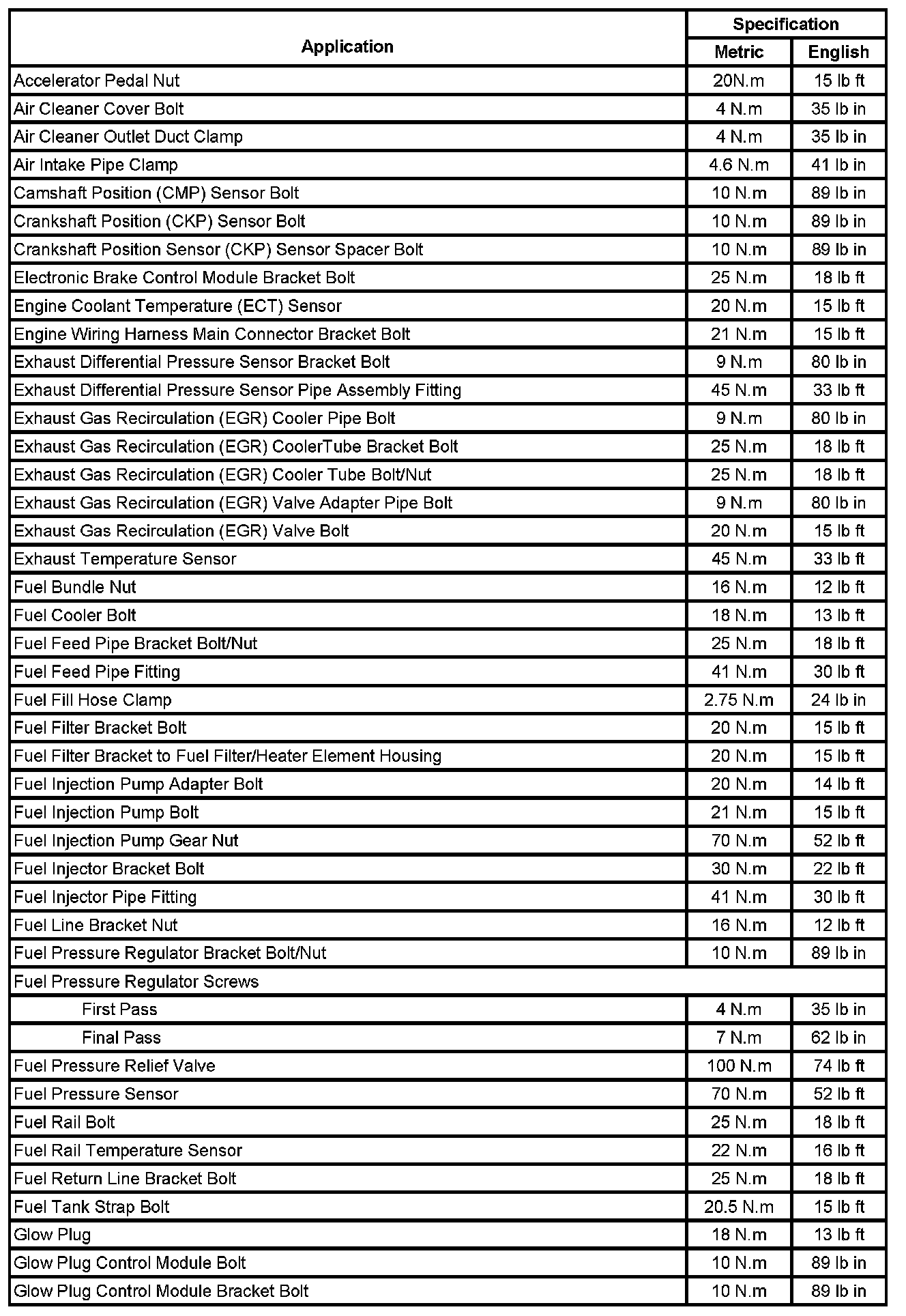 Fastener Tightening Specifications