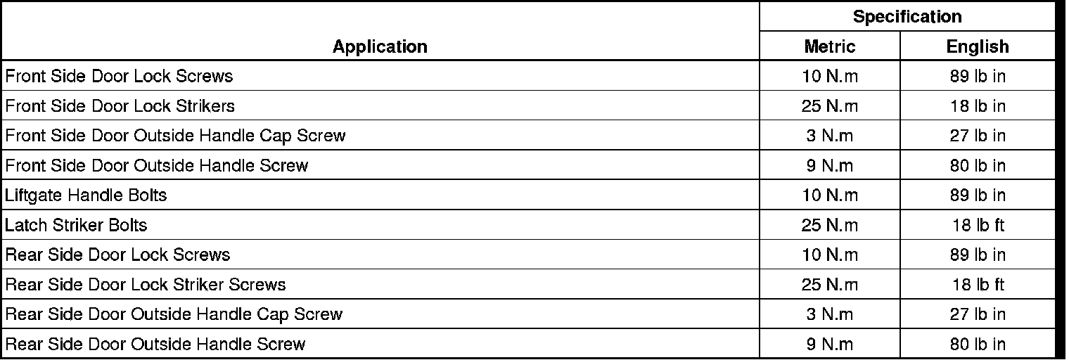 Fastener Tightening Specifications