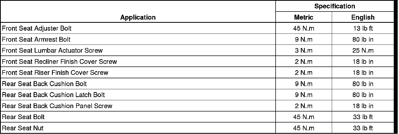 Seats: Specifications