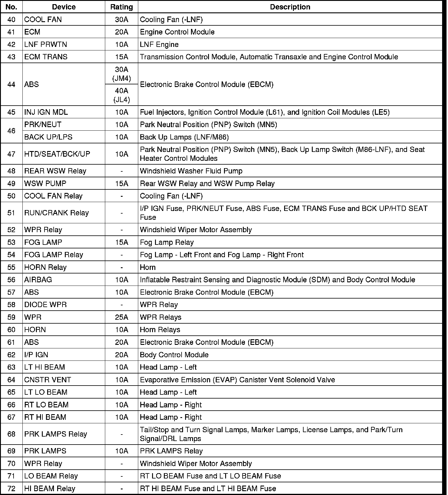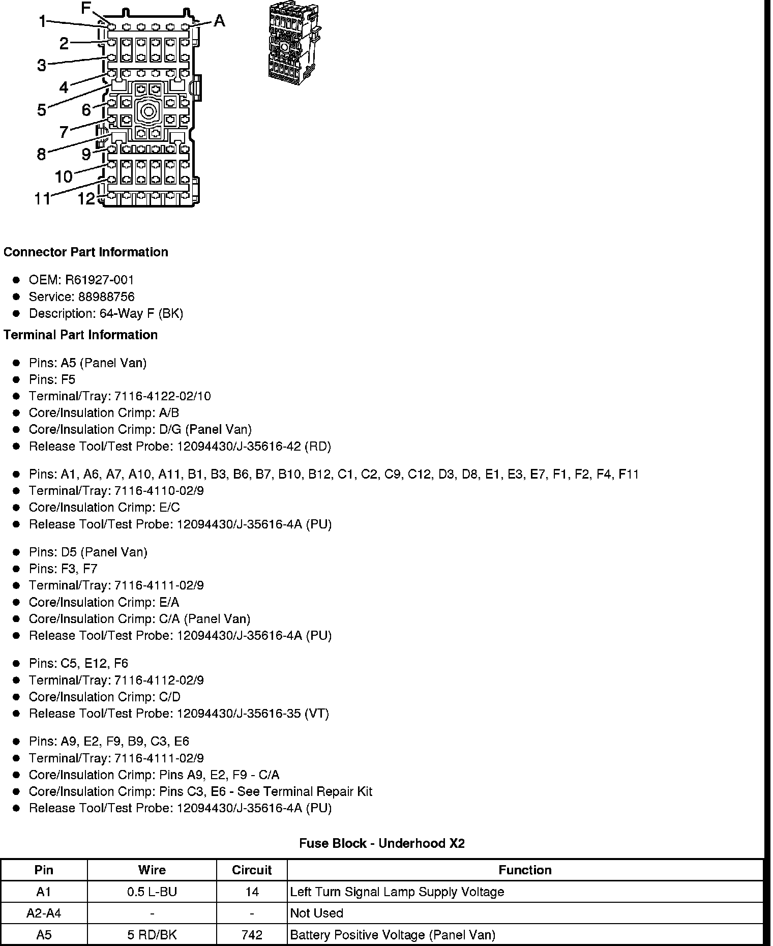 Fuse Block - Rear Access Panel Top View (Panel Van)