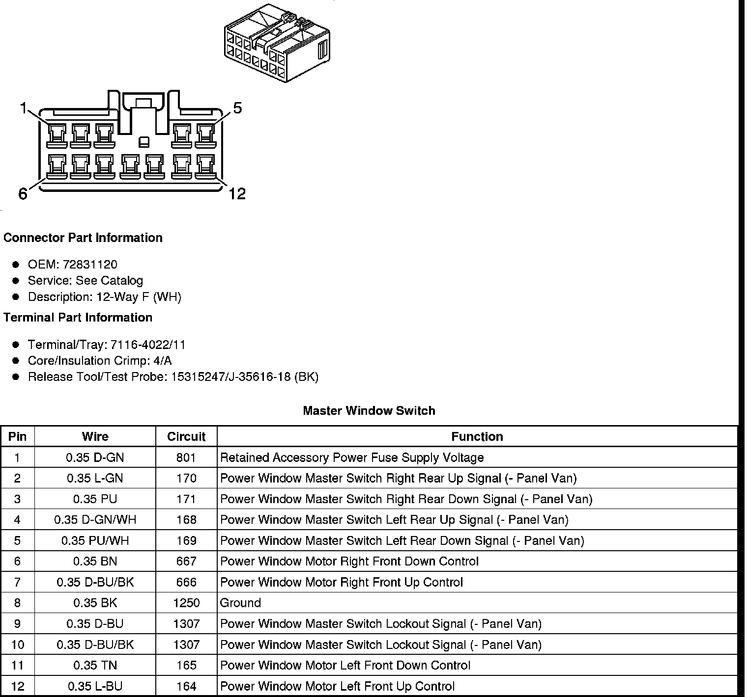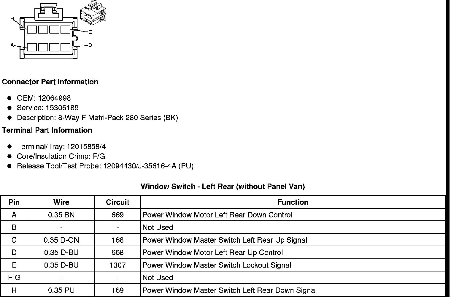 Window Switch - Left Rear (without Panel Van)