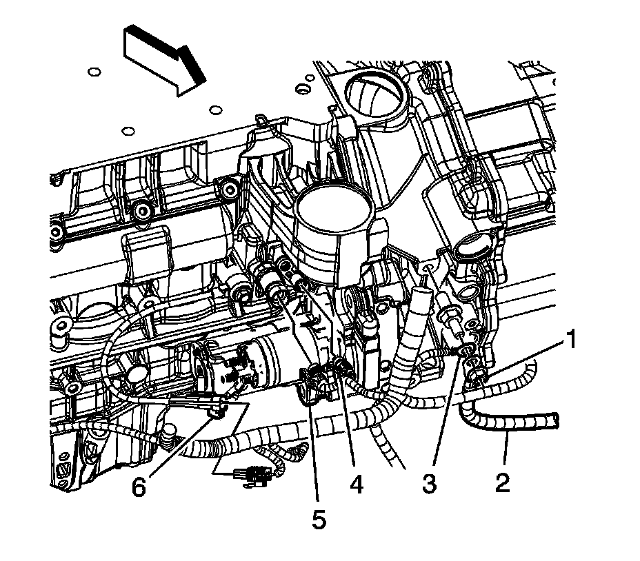 2. Disconnect the knock sensor (KS) harness electrical connector (6).