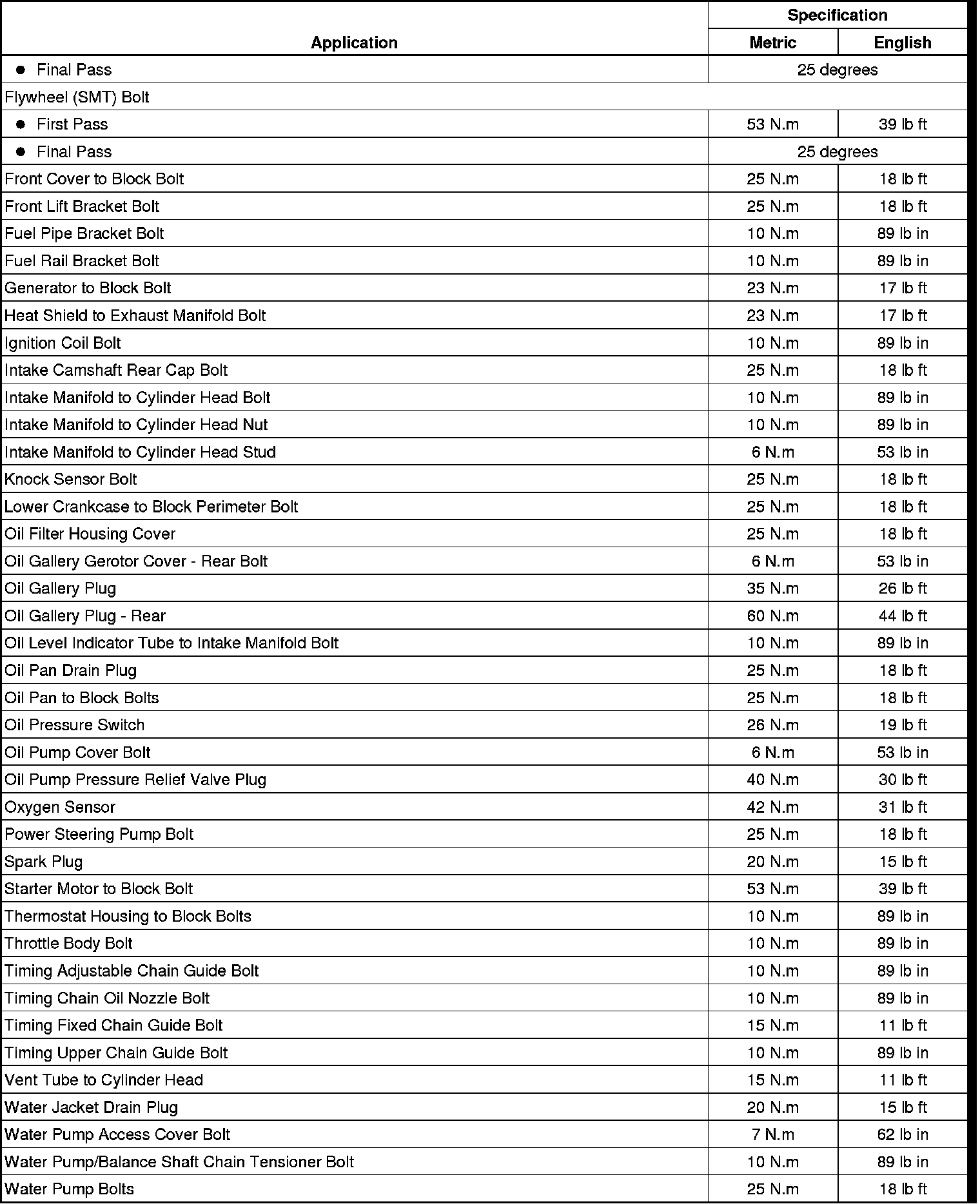 Fastener Tightening Specifications