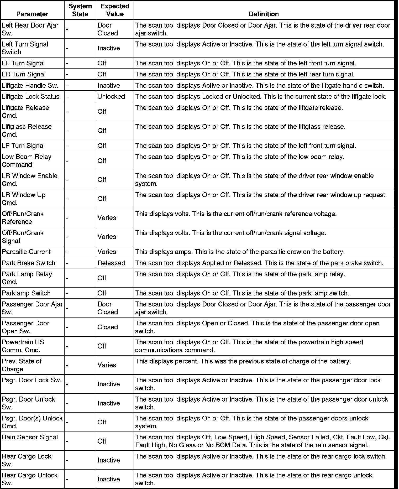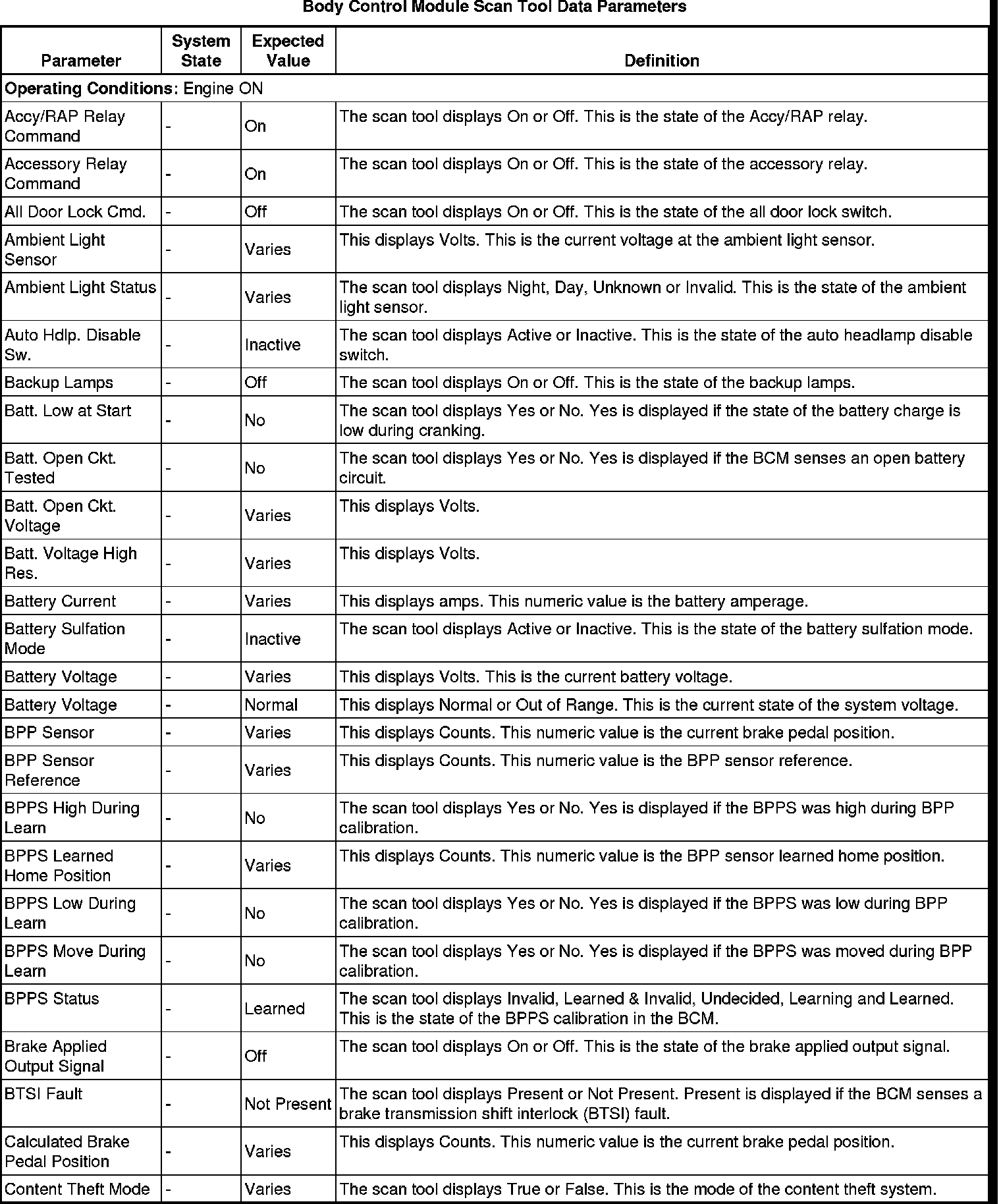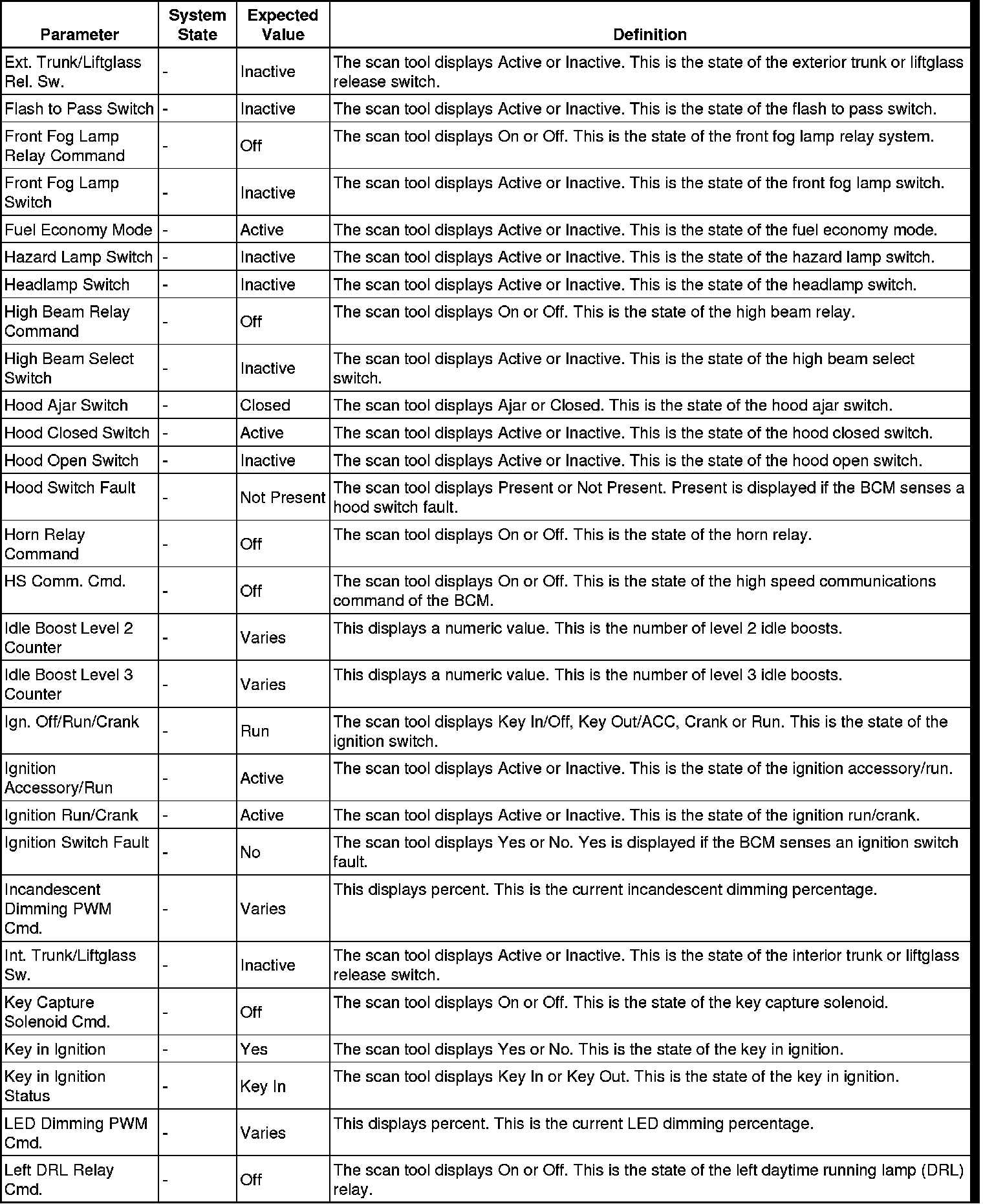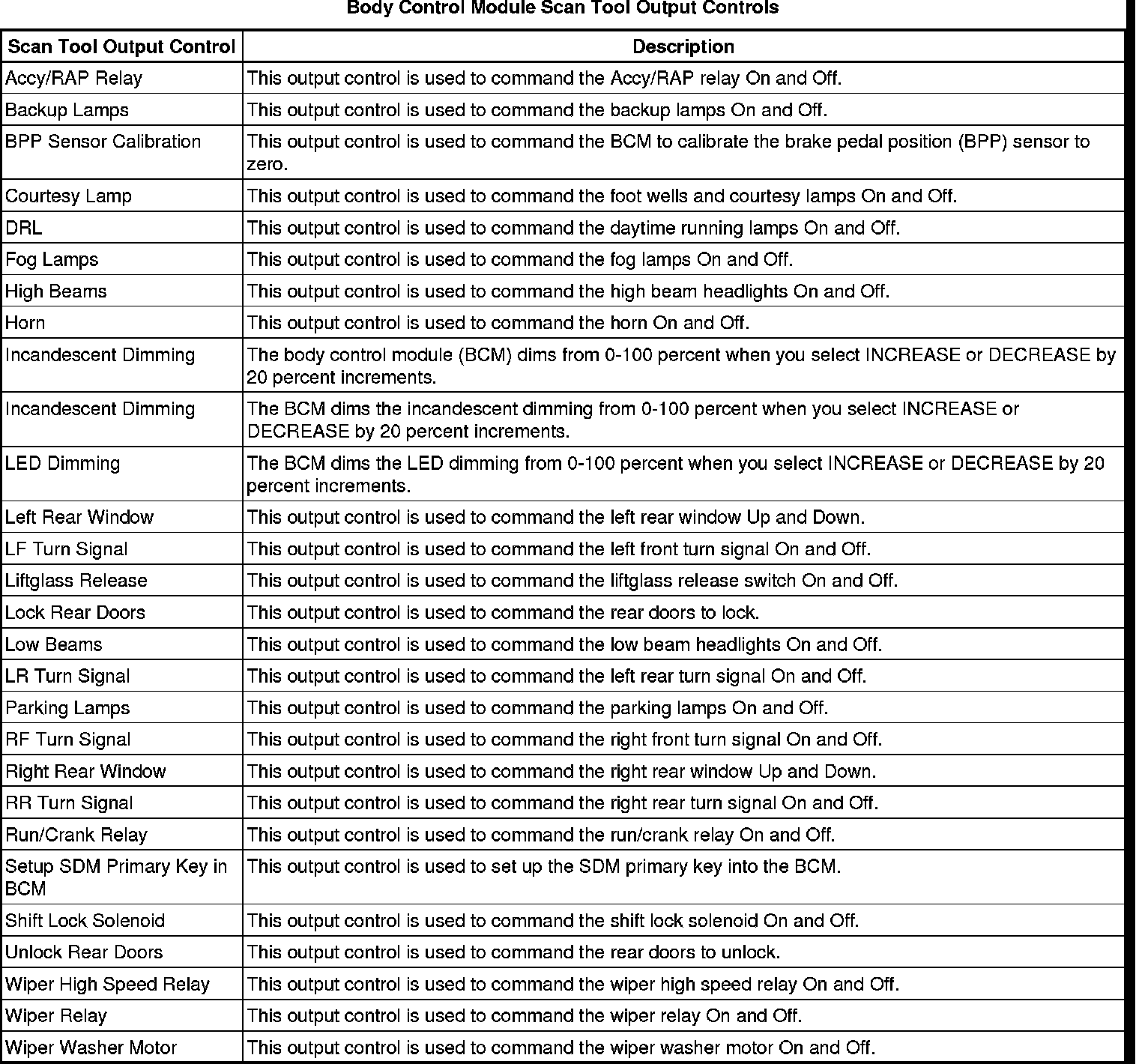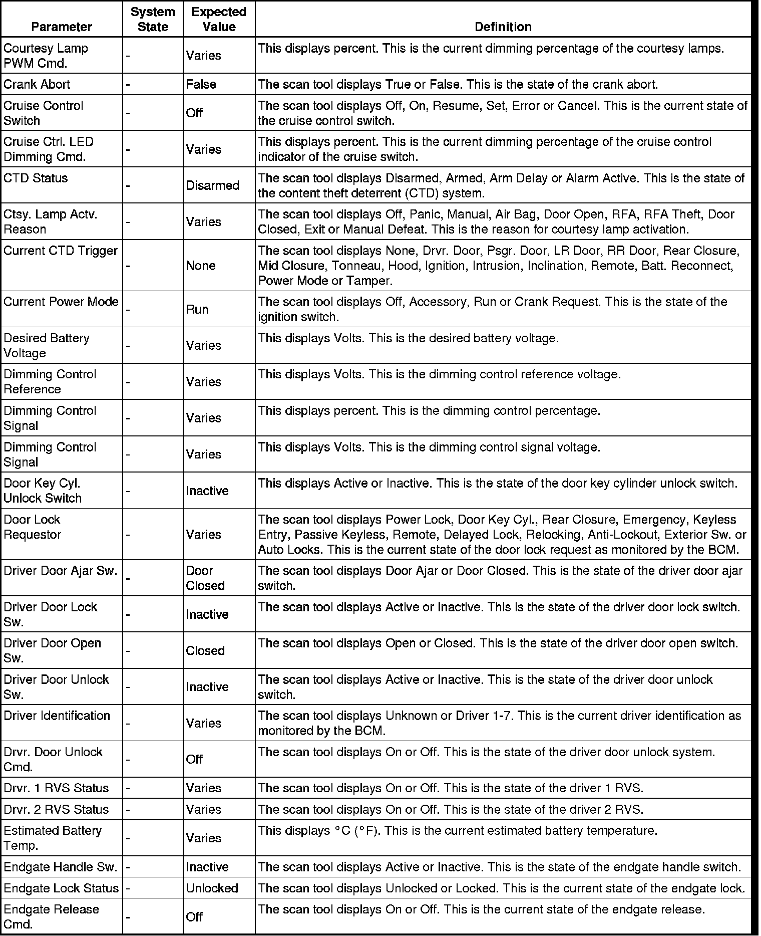 Body Control Module Scan Tool Information
