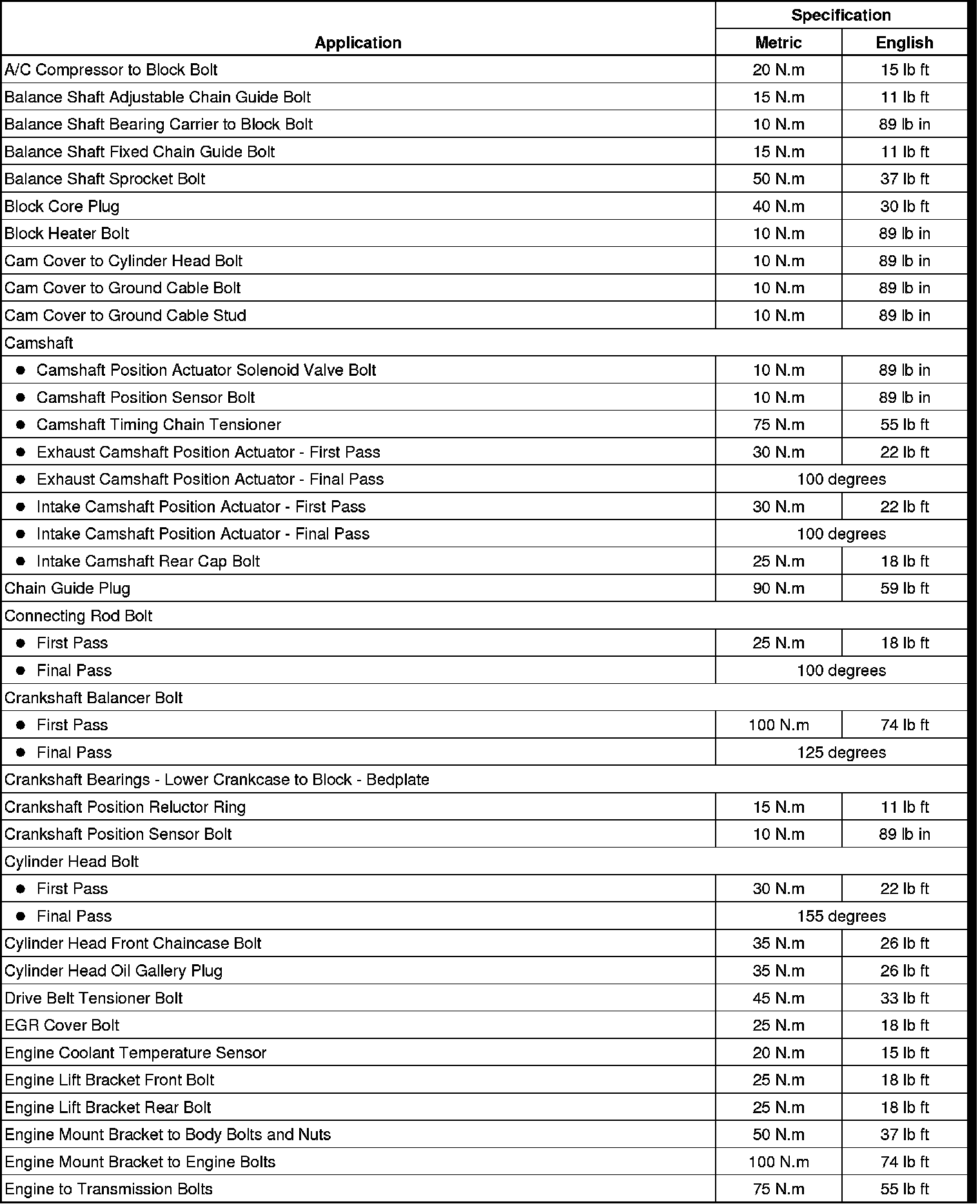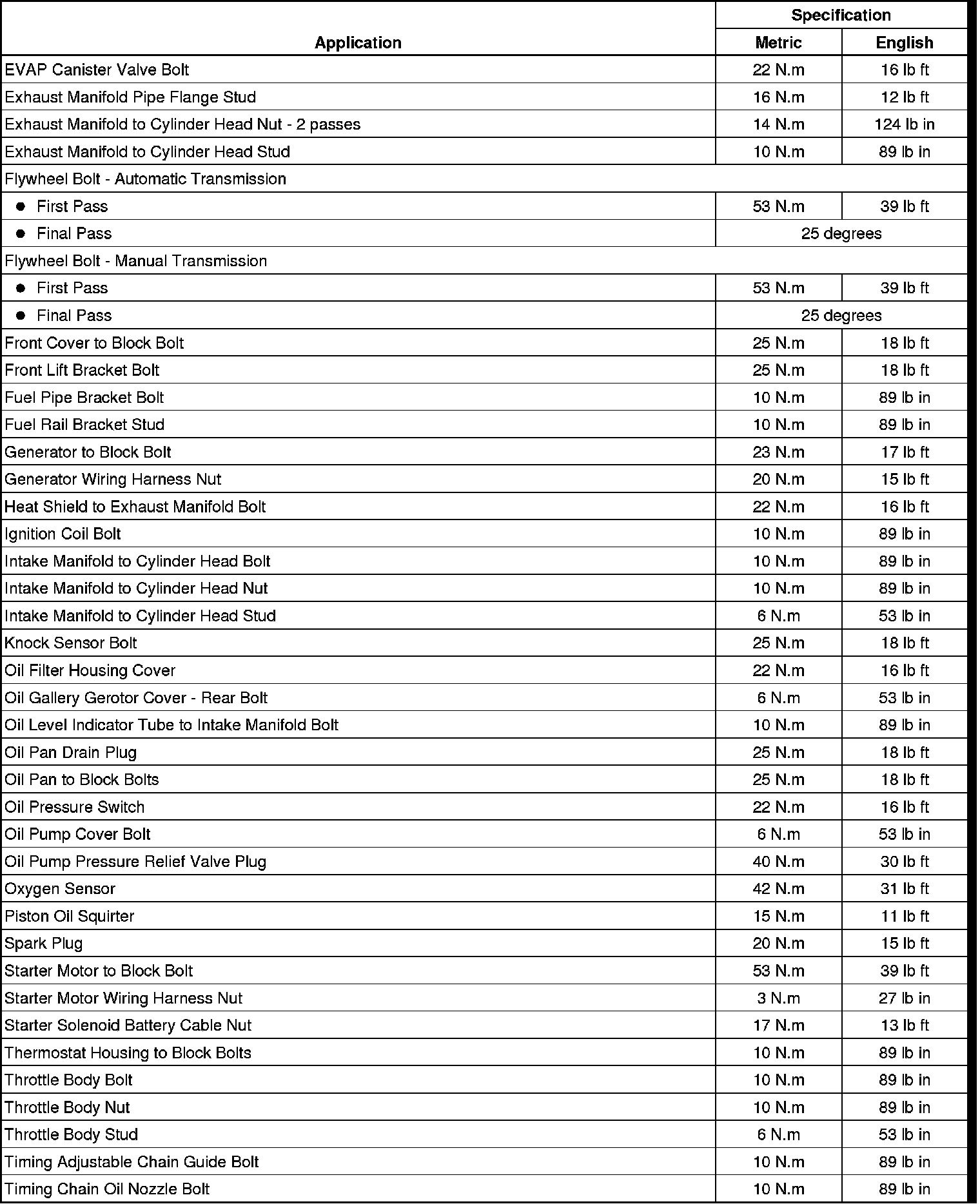 Fastener Tightening Specifications