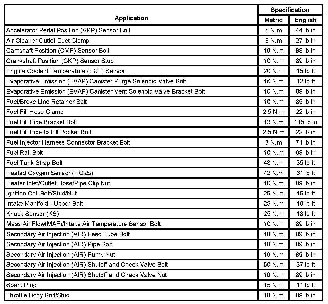 Fastener Tightening Specifications