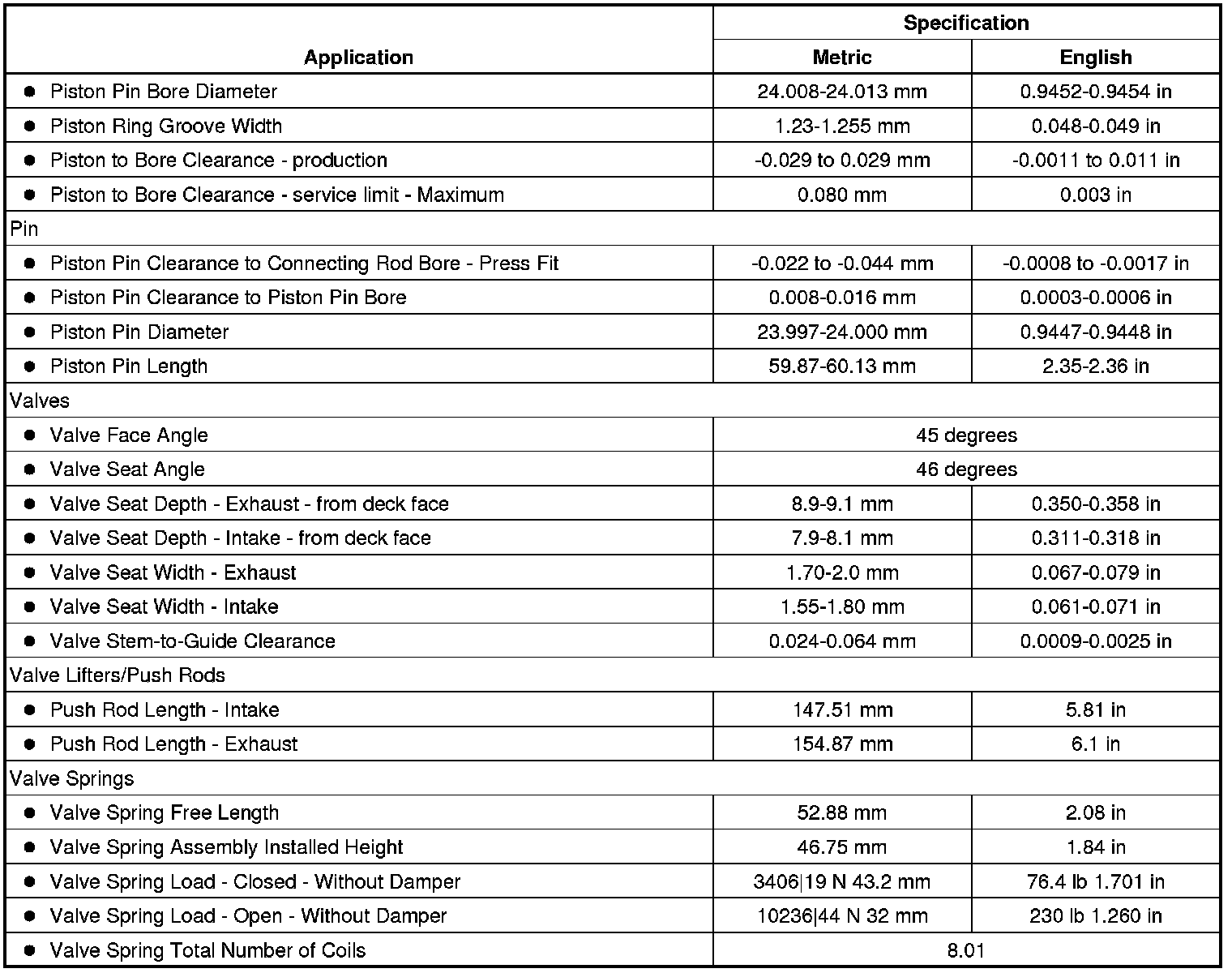Engine Mechanical Specifications