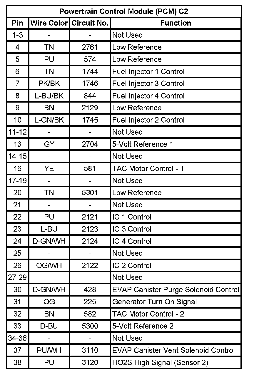Powertrain Control Module (PCM) C2 (Pin 1 To 38):