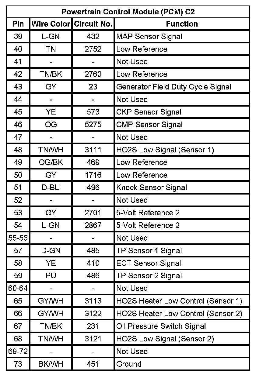Powertrain Control Module (PCM) C2 (Pin 39 To 73):