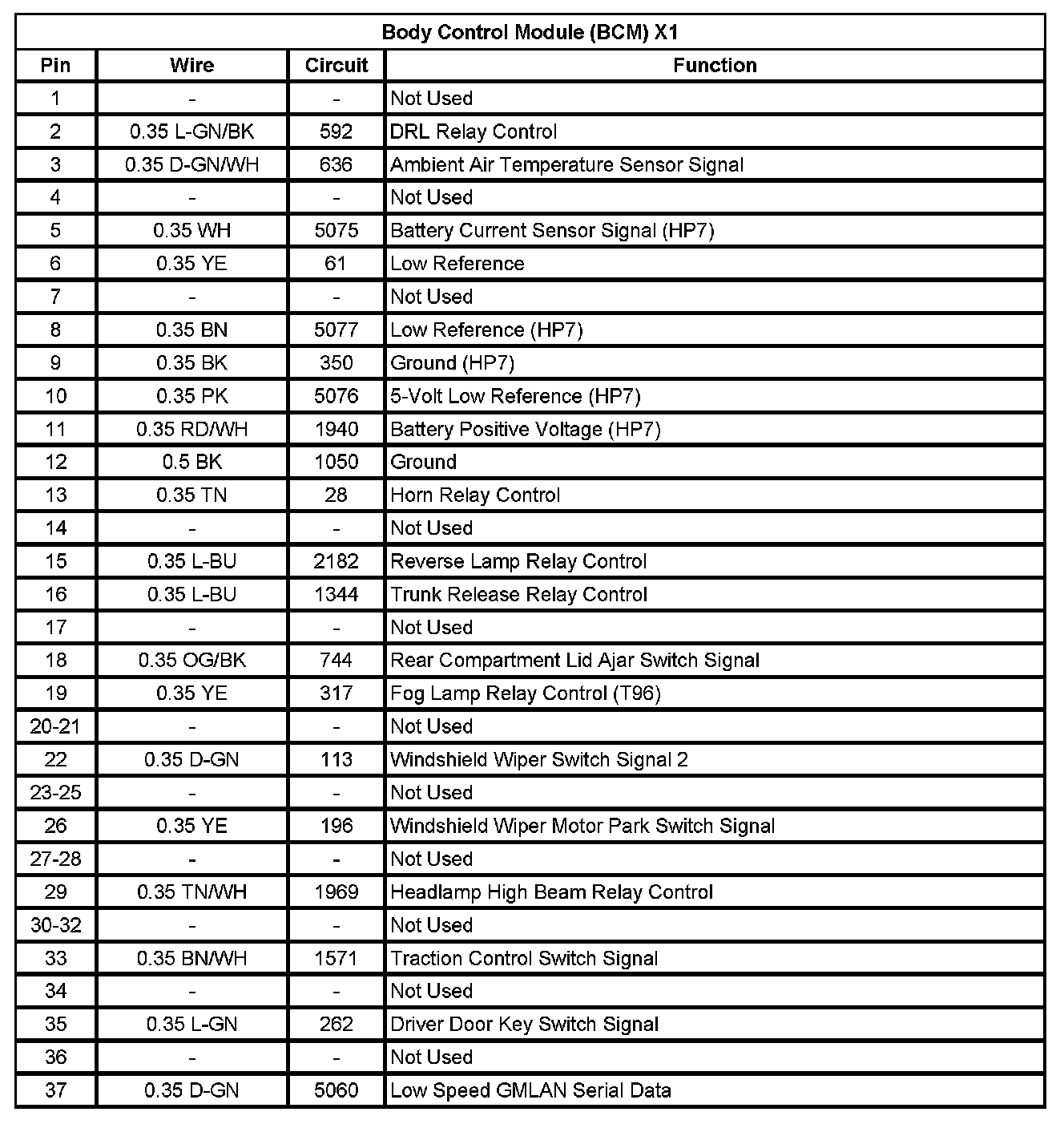 Body Control Module (BCM) X1 (Pin 1 To 37):