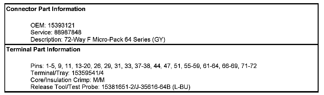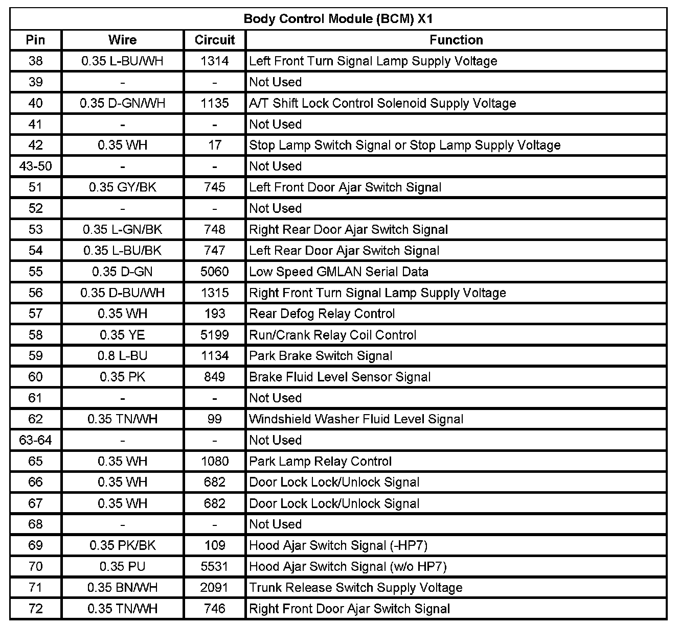 Body Control Module (BCM) X1 (Pin 38 To 72):