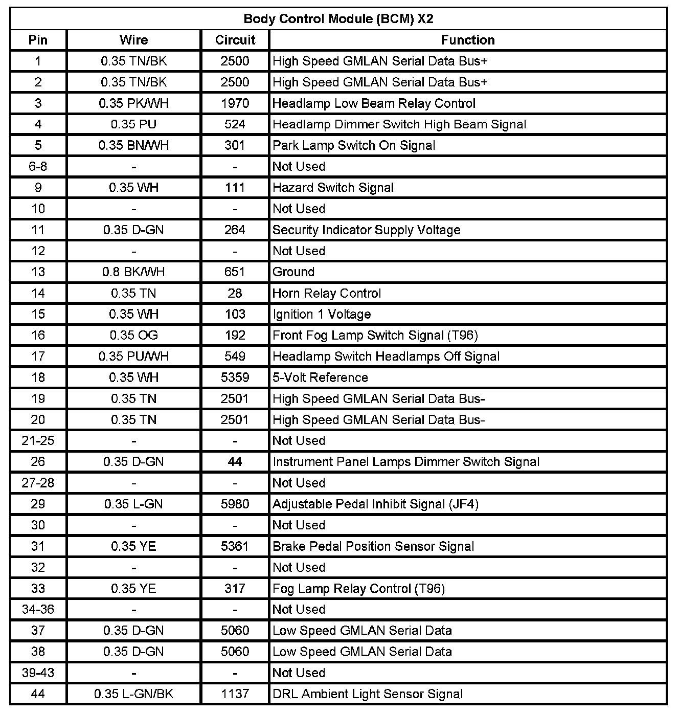 Body Control Module (BCM) X1 (Pin 1 To 44):
