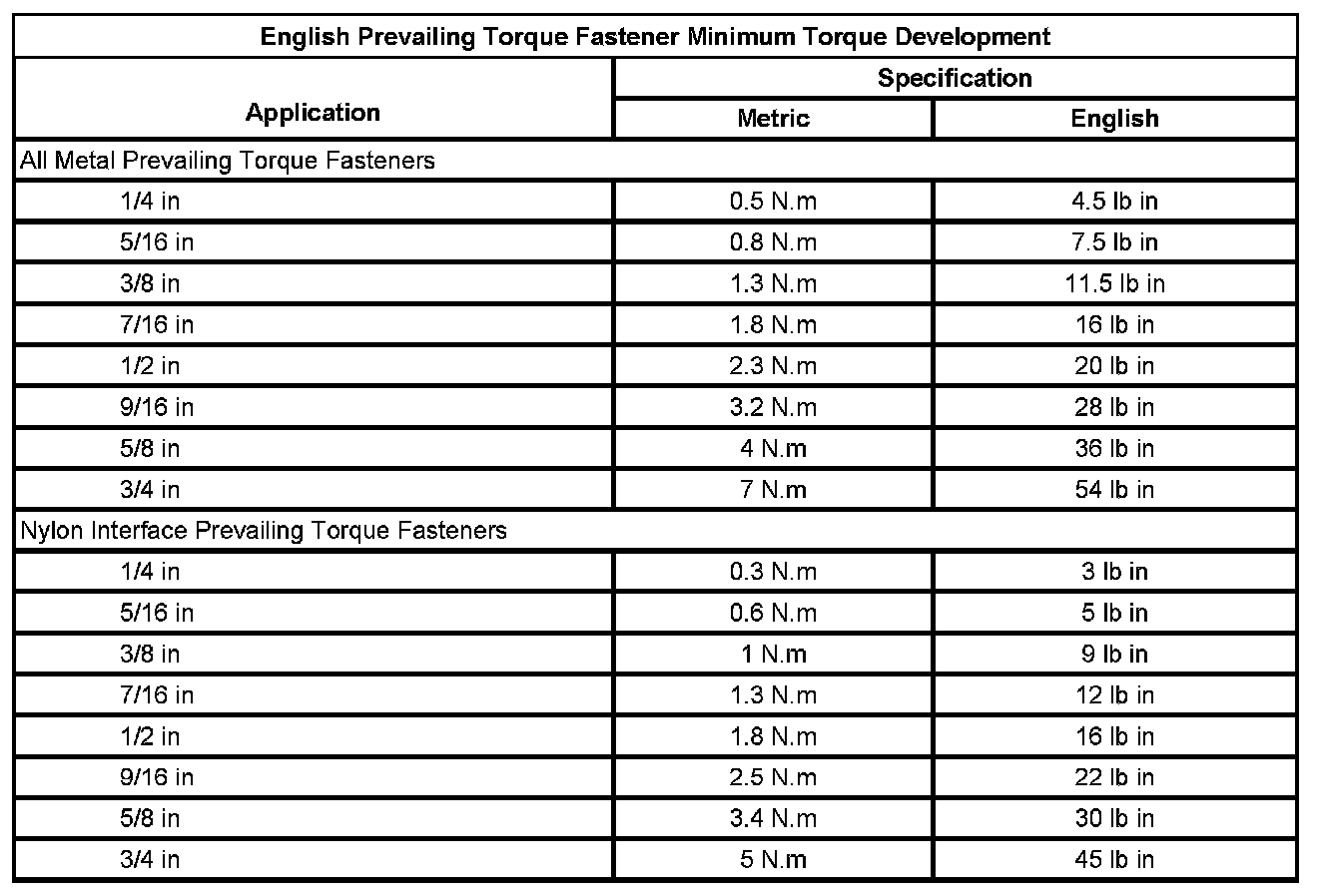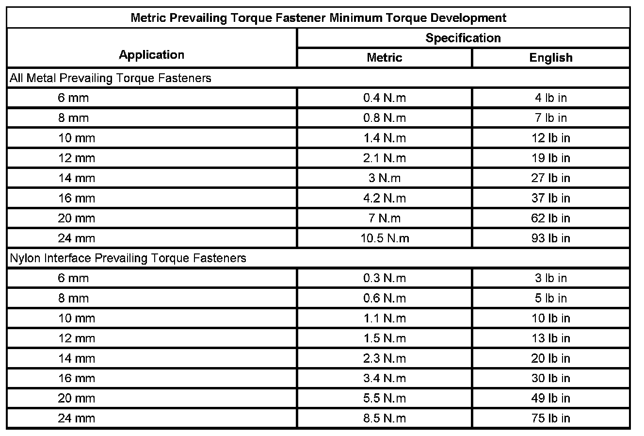 Prevailing Torque Fasteners