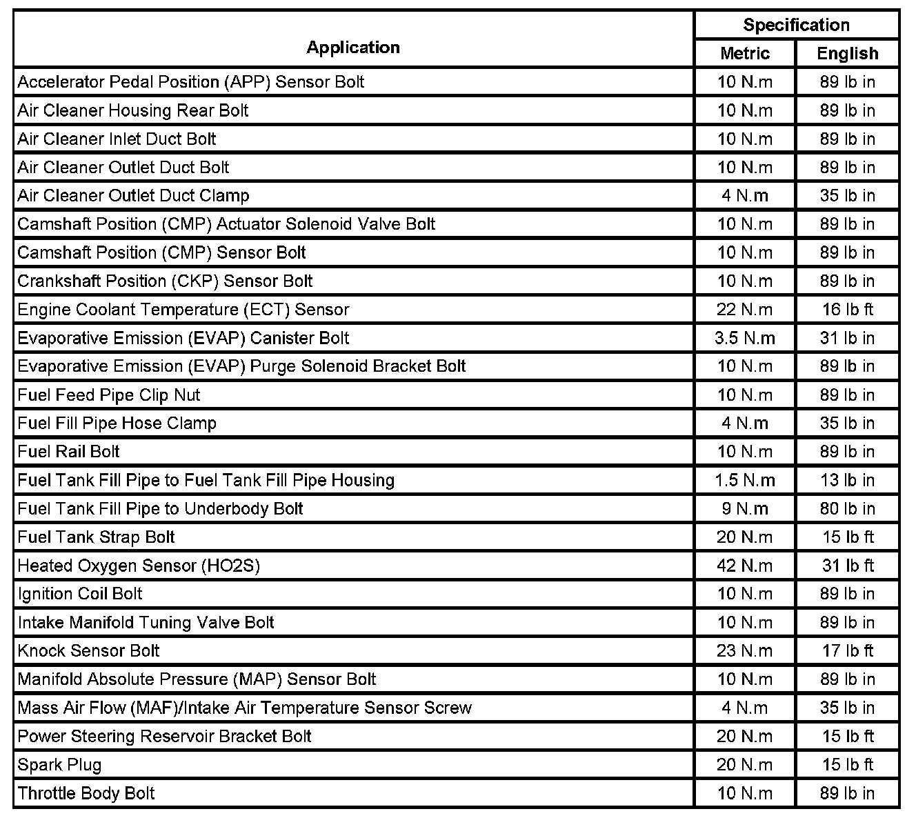Fastener Tightening Specifications