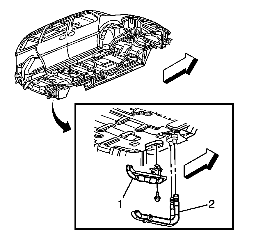10. Disconnect the auxiliary heater hoses (2) from the heater core pipes using the J 38185.