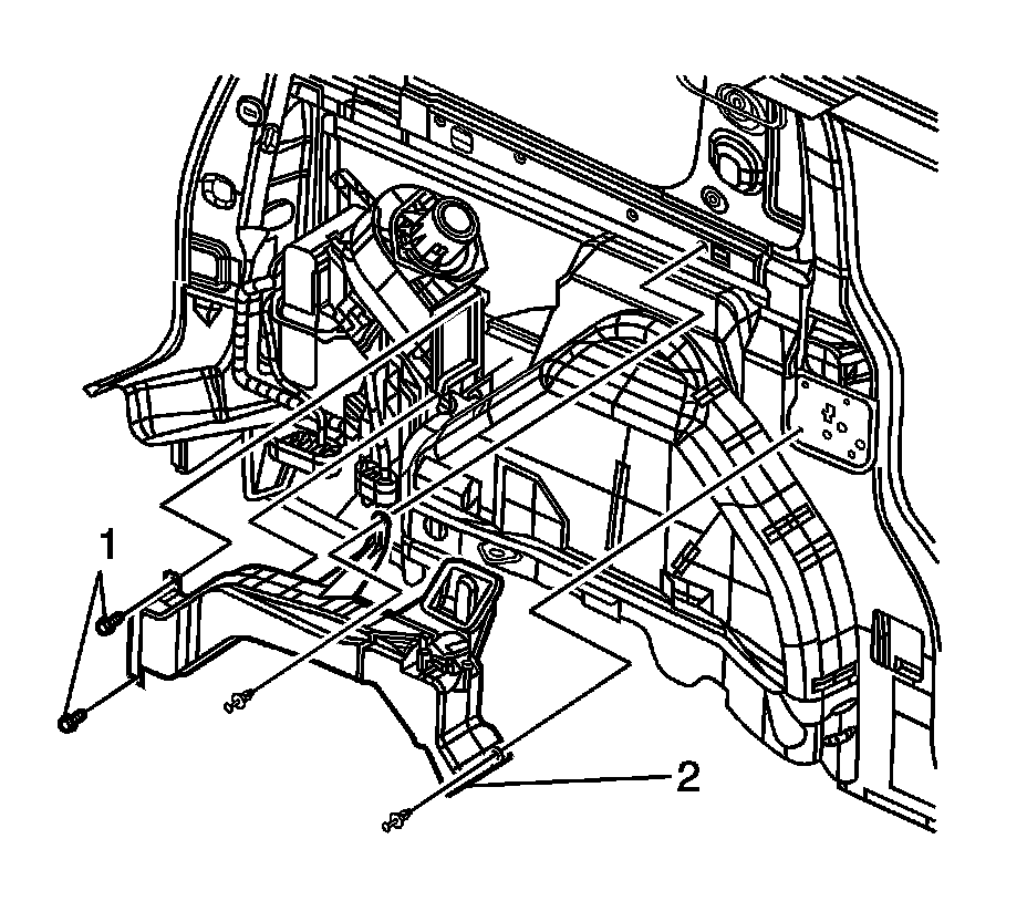 14. Remove the auxiliary A/C outlet duct bolts (1).