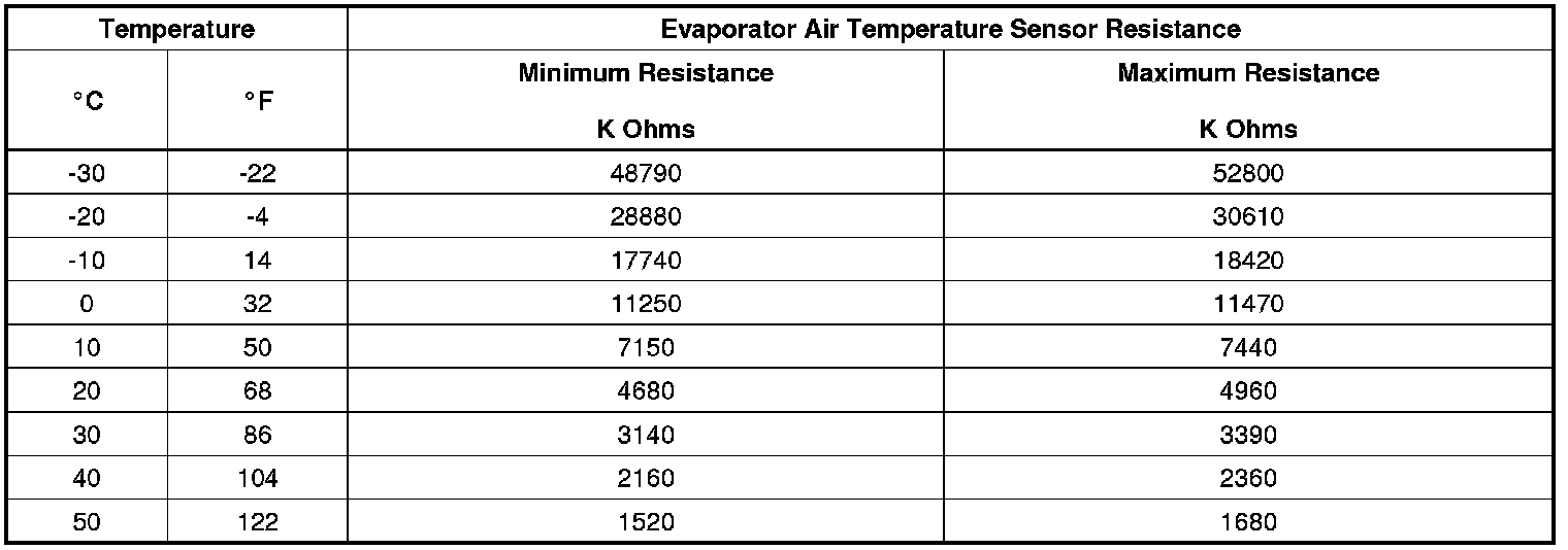 Sensor Resistance Table