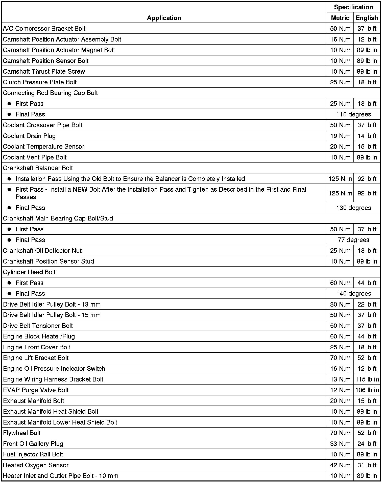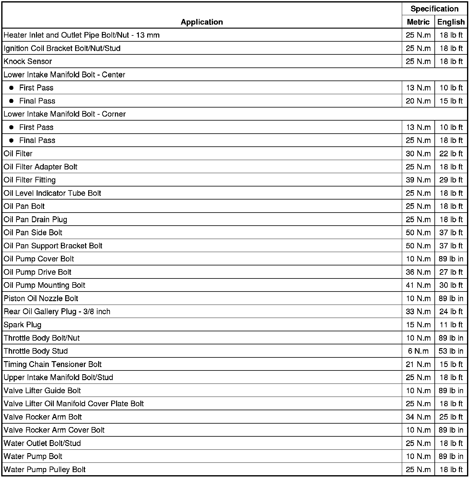 Fastener Tightening Specifications