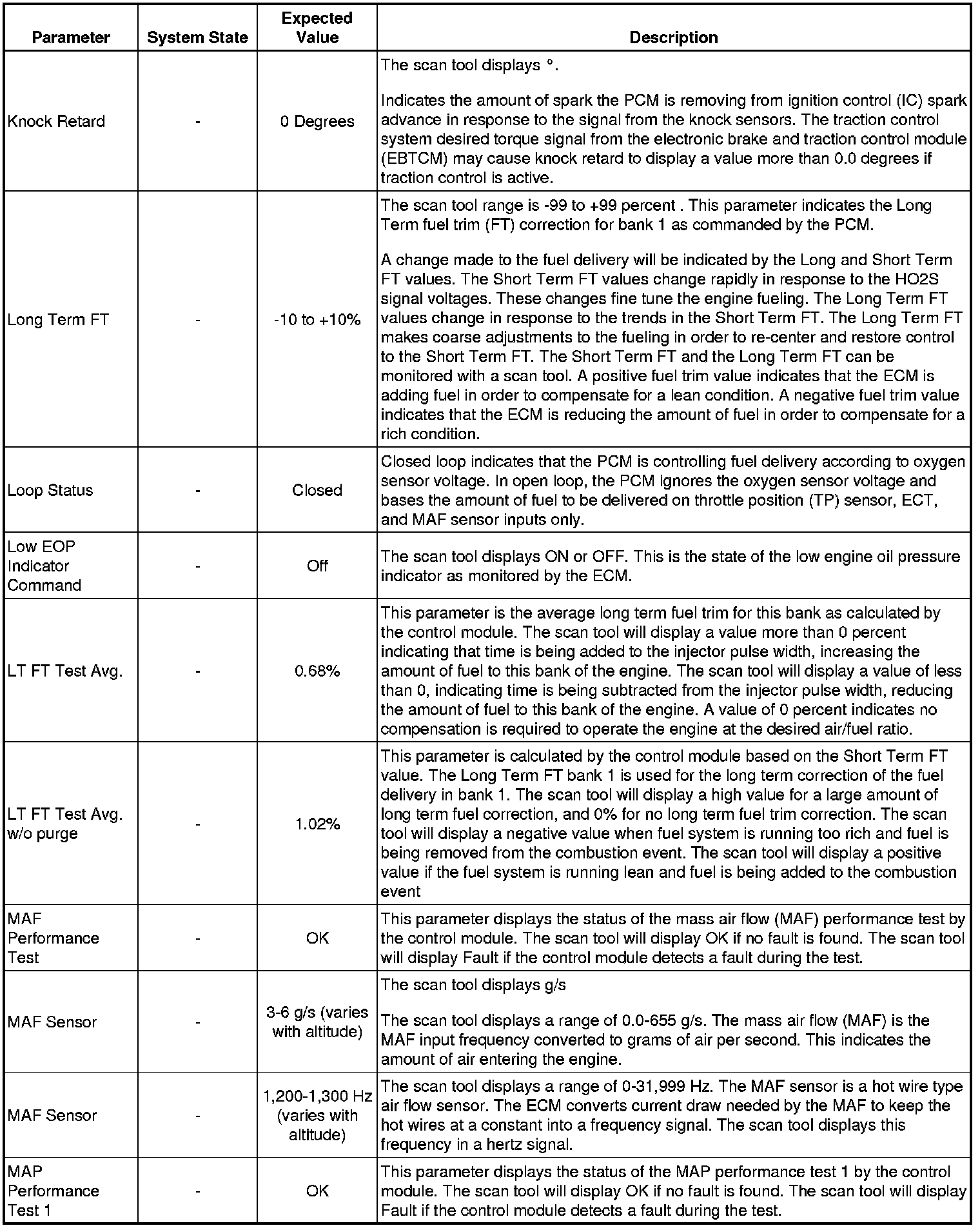 The Engine Control Module Scan Tool Data List contains all engine-related parameters that are available on the scan tool. The list is arranged in alphabetical order. A given parameter may appear in any one of the data lists, and in some cases may appear more than once, or in more than one data list in order to group certain related parameters together.