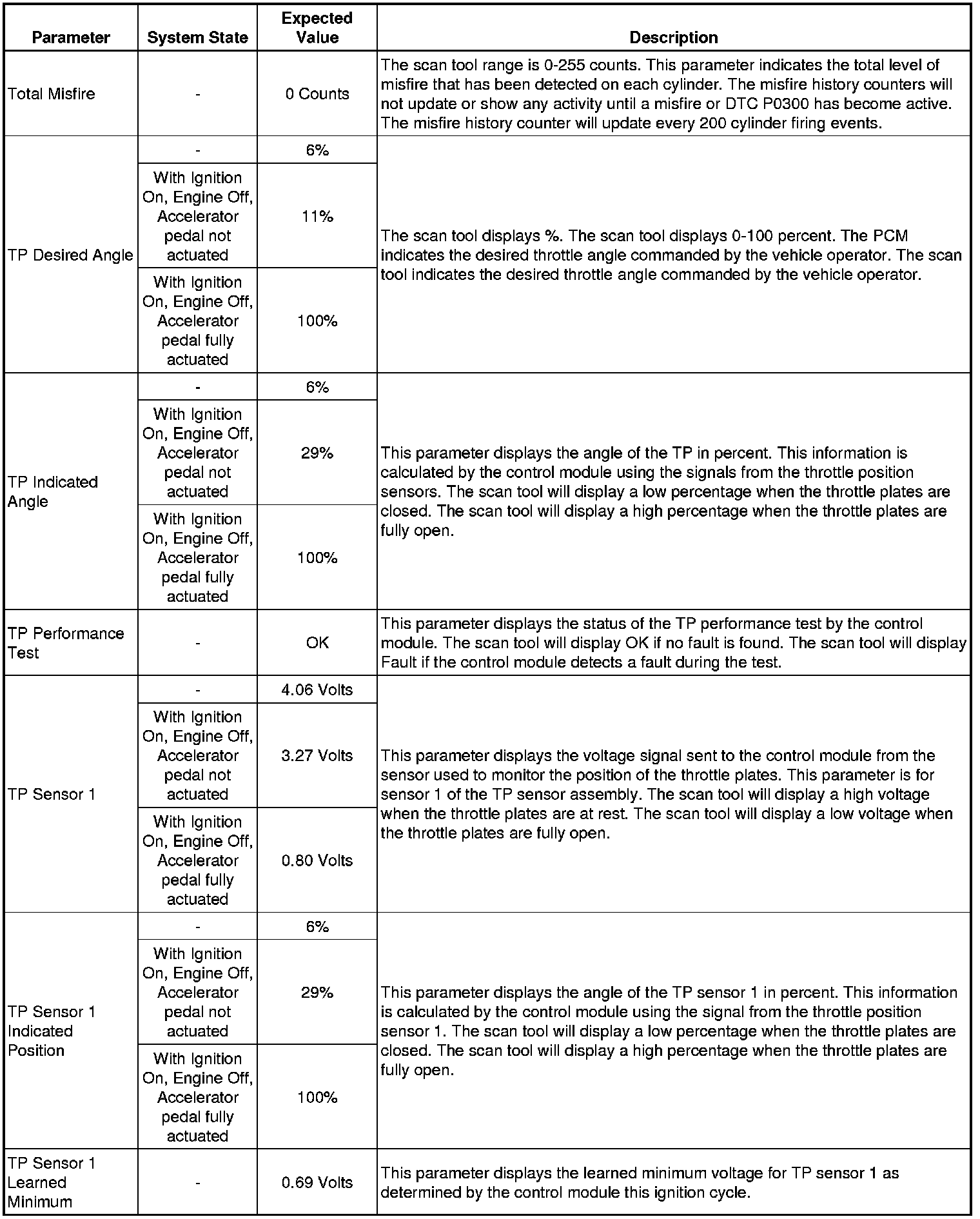 Only the parameters listed below are referenced in this service manual for use in diagnosis. If all values are within the typical range described below, refer to Symptoms - Engine Controls (- Symptoms - Engine Controls) for the 2.9L engine or Symptoms - Engine Controls (- Symptoms - Engine Controls) for the 3.7L engine for diagnosis.