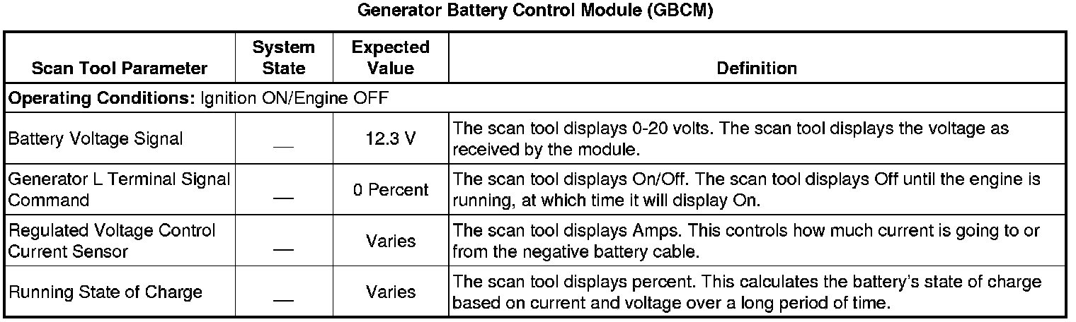Generator Battery Control Module Scan Tool Information