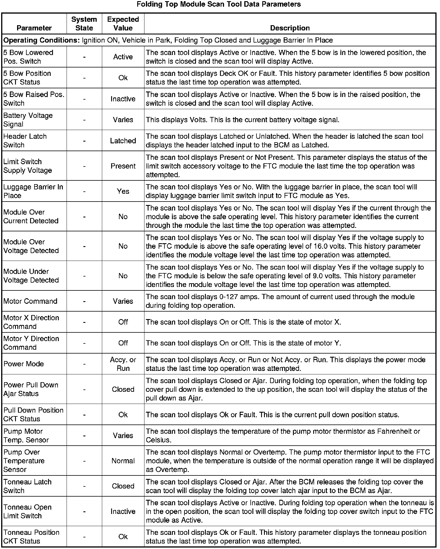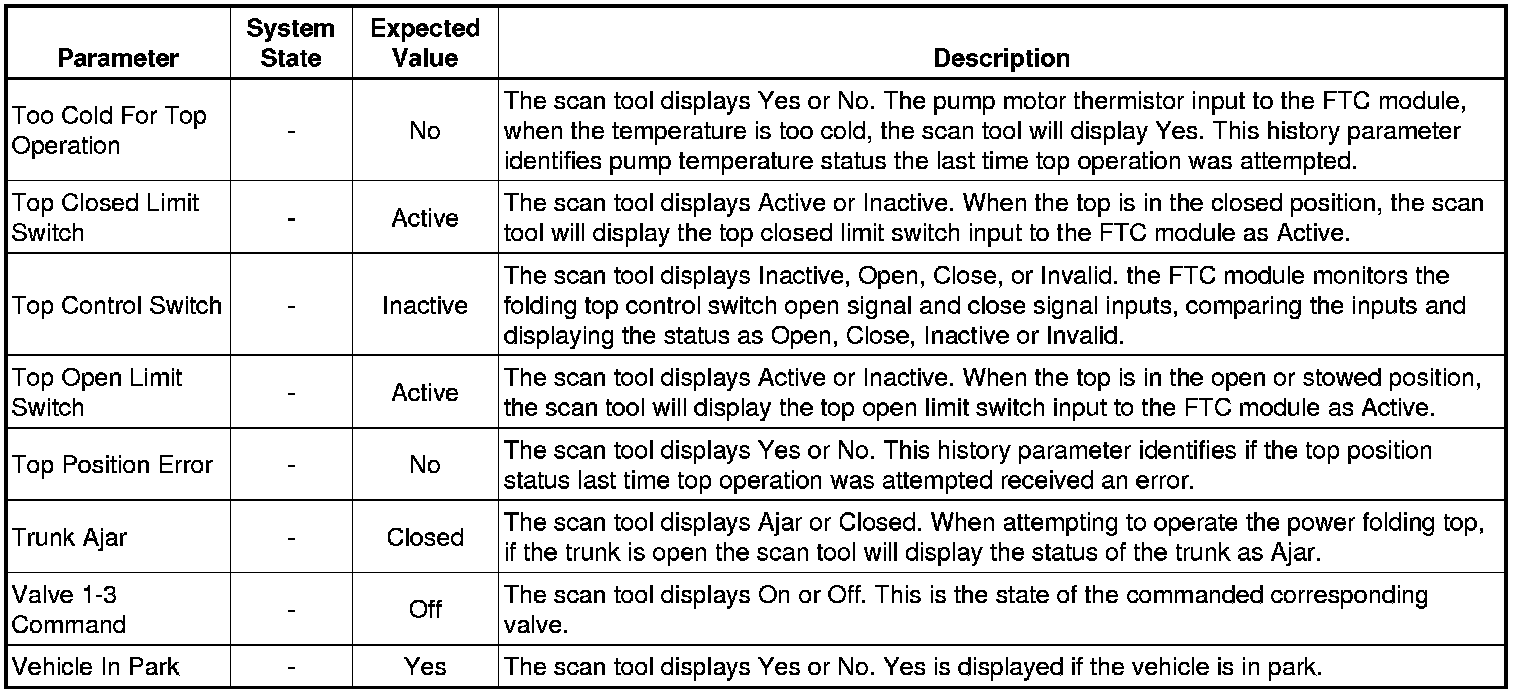 Folding Top Control Module Scan Tool Information