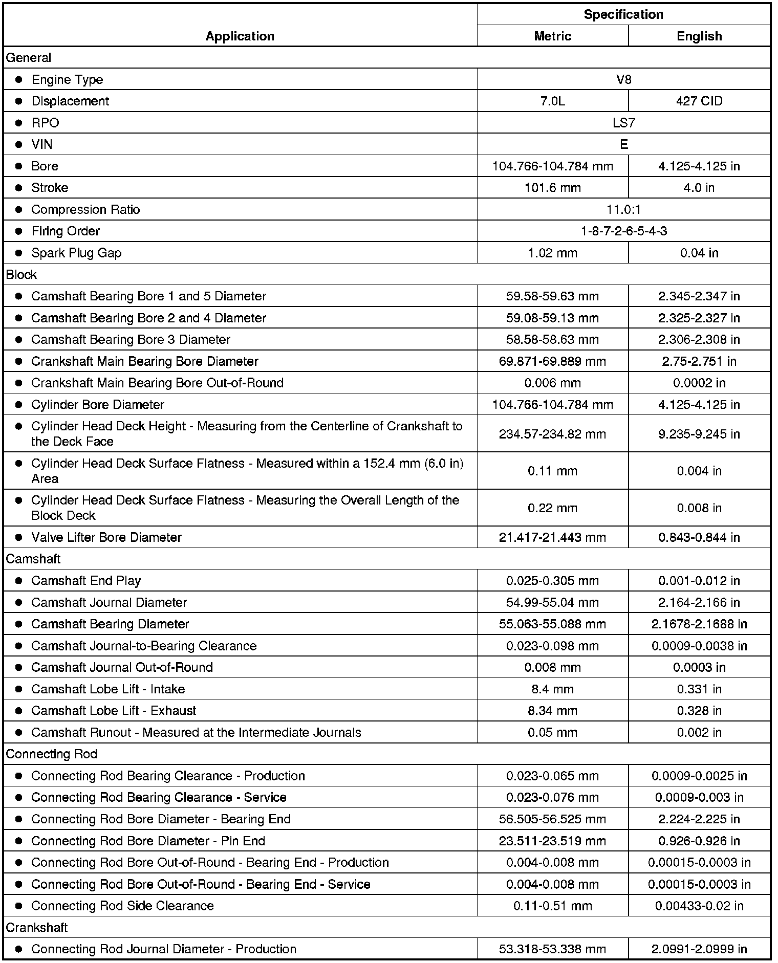 Engine Mechanical Specifications (7.0L)