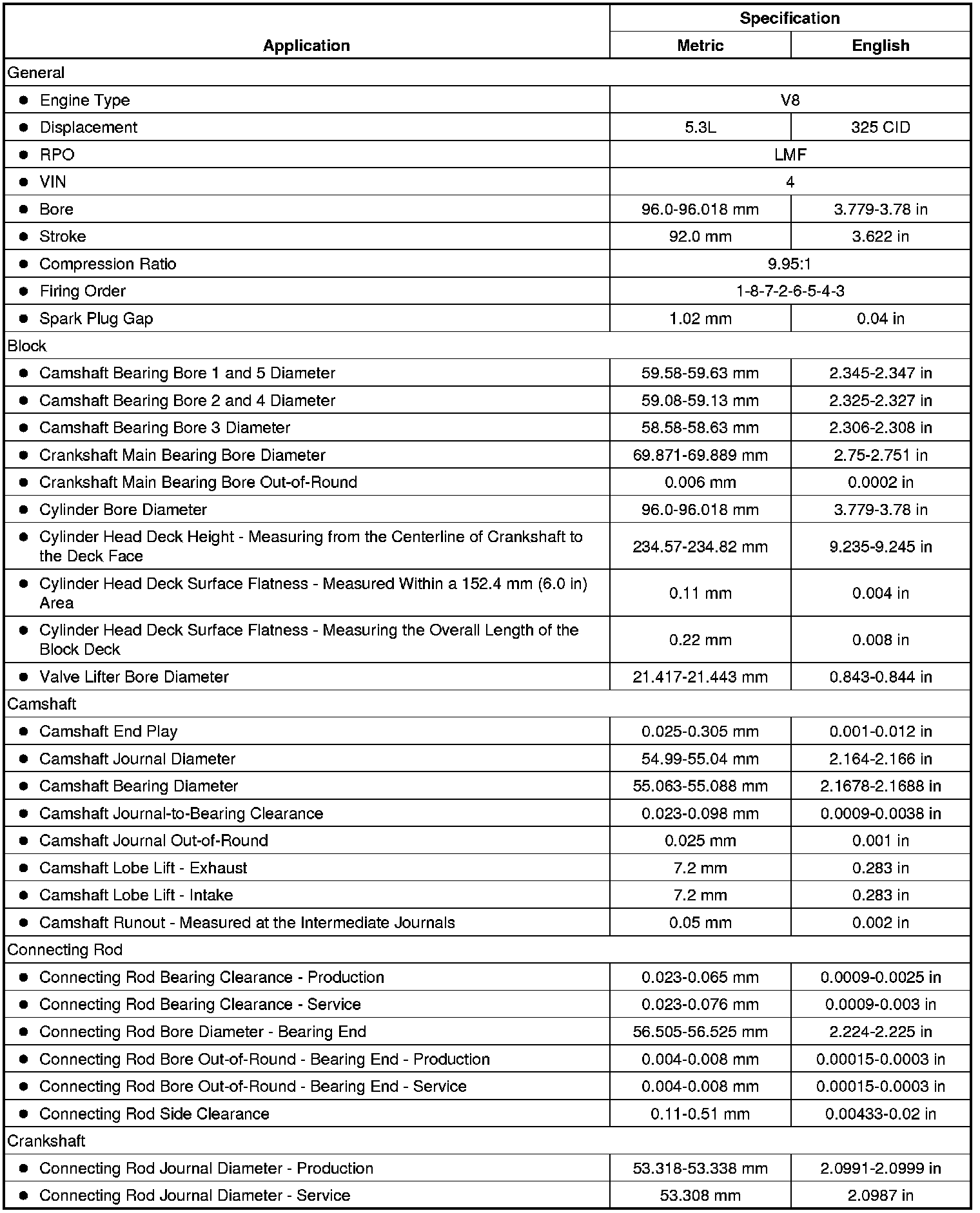 Engine Mechanical Specifications (RPO LMF VIN 4) (5.3L)