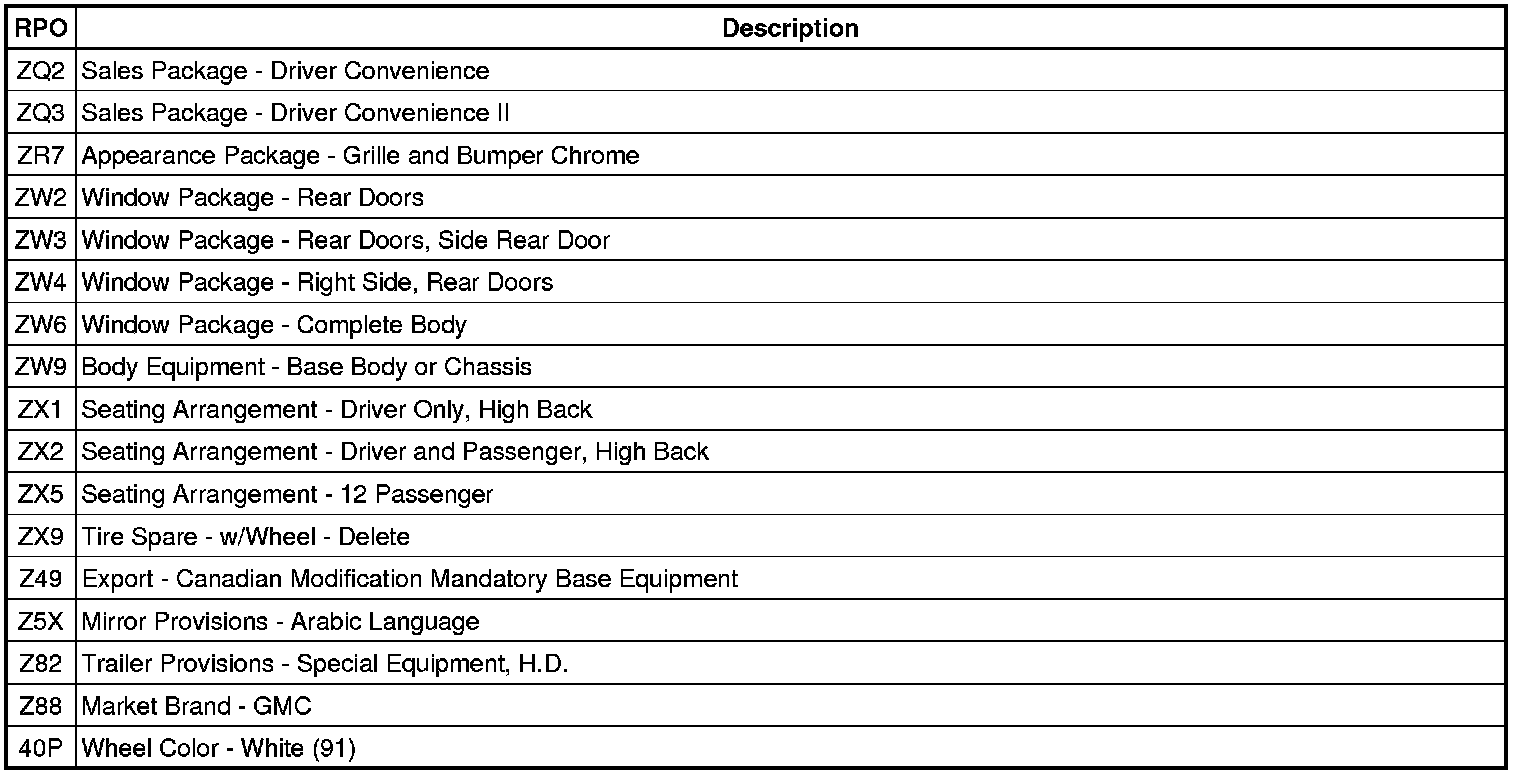 The production/process codes provide the description of the regular production options (RPOs). The RPO list is printed on the Service Parts Identification Label.