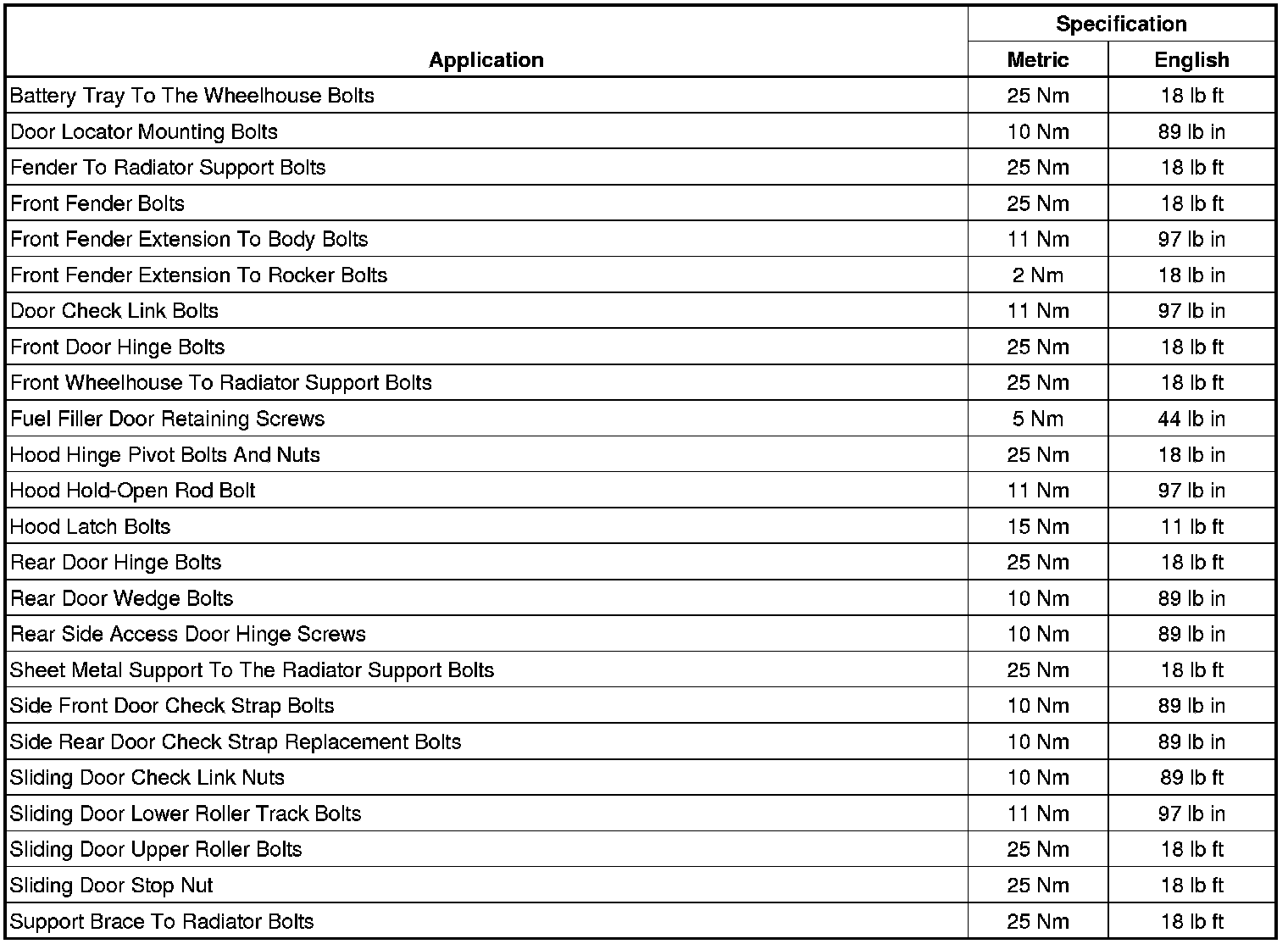 Fastener Tightening Specifications