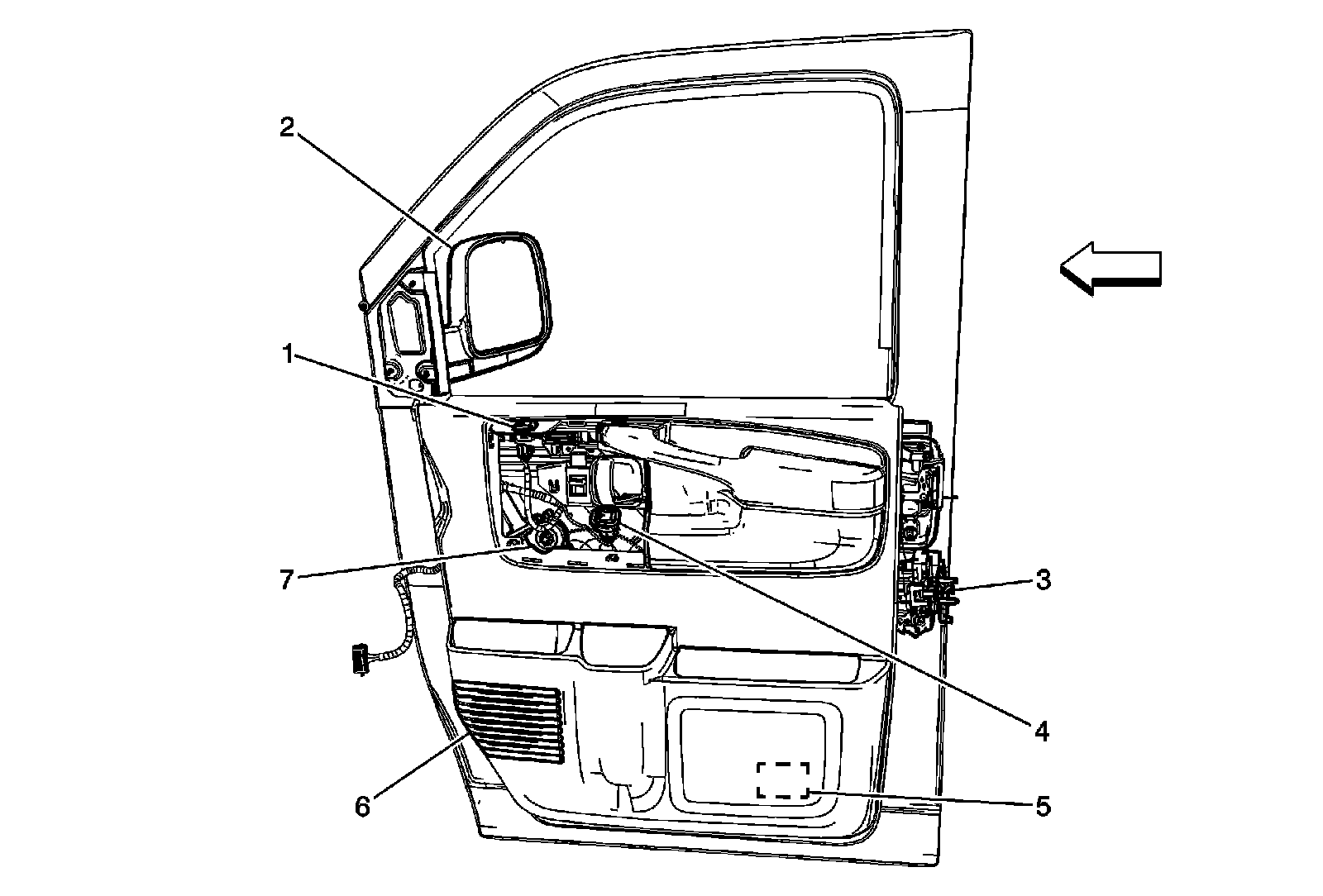 2 - Outside Rearview Mirror - Passenger (DE5/DE7)