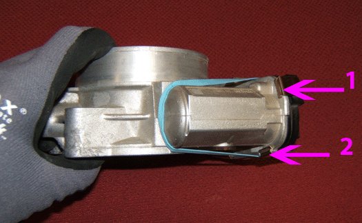 8. Secure a rubber band around the throttle body and TP sensor cover as shown.