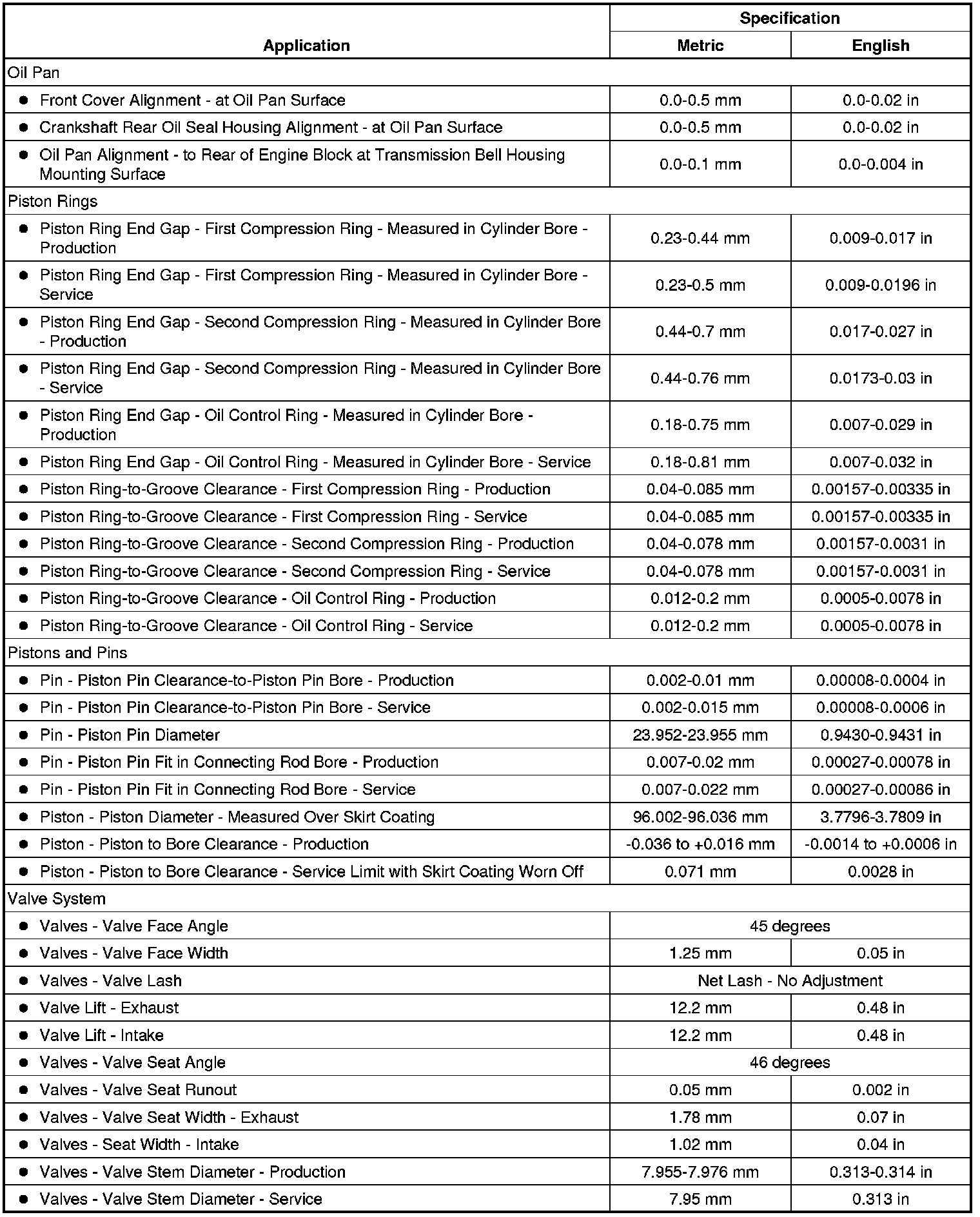 Engine General Specifications & Service Limits