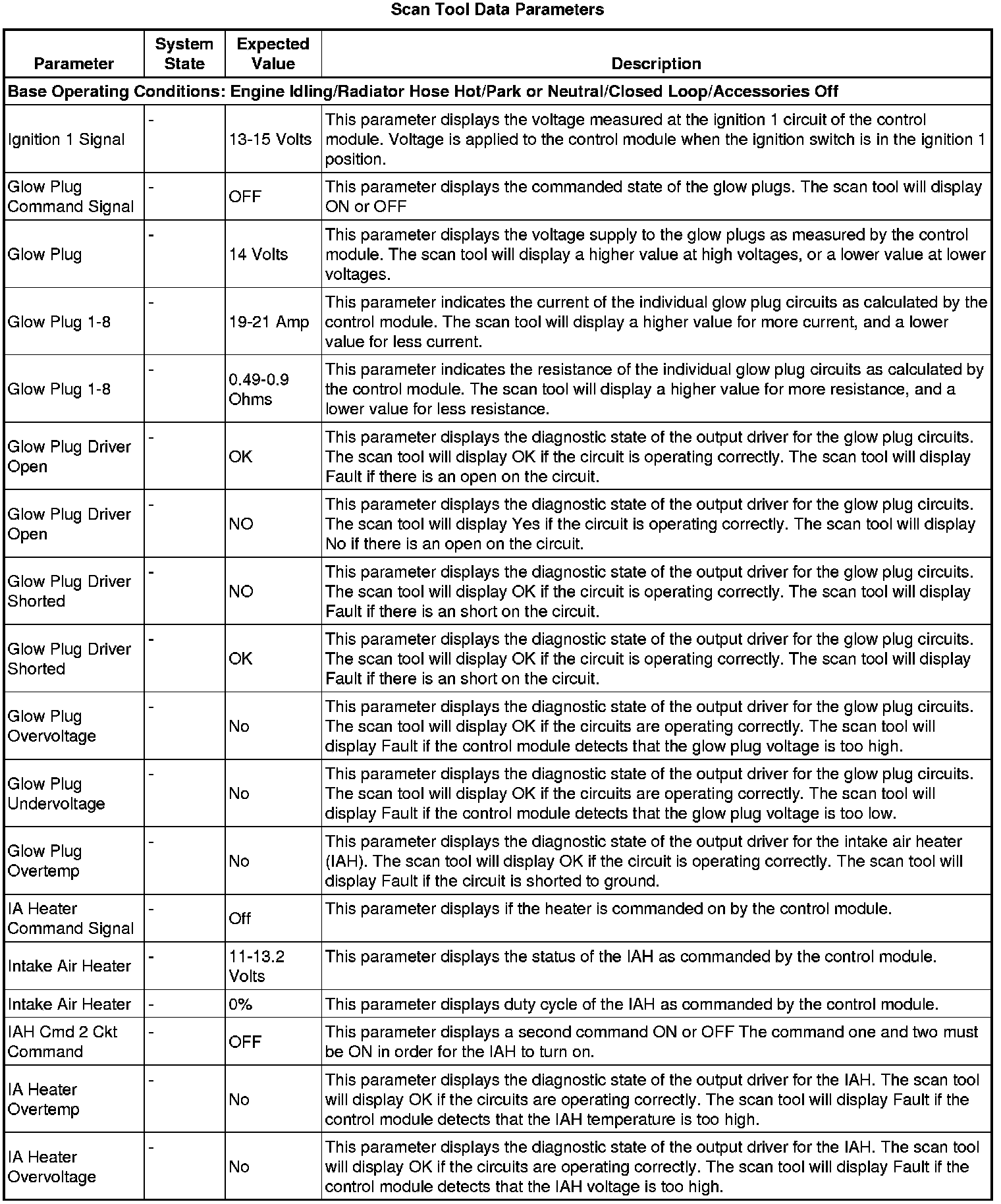 Glow Plug Control Module Scan Tool Information