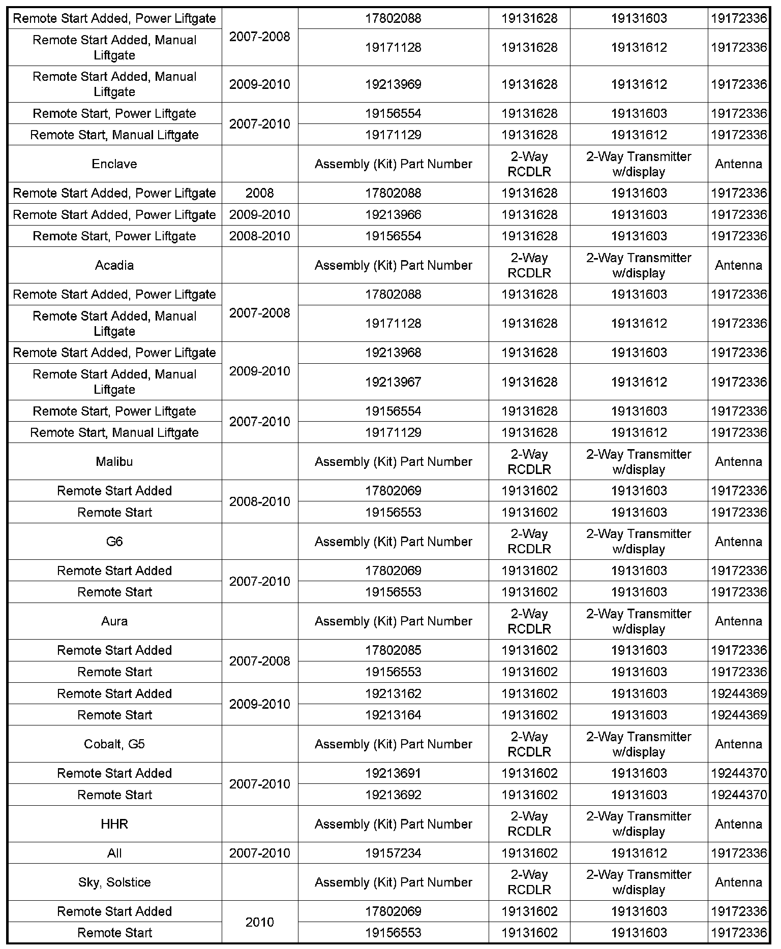 Subject: GM Accessories: 2-Way Advanced Remote Start Systems Part Information
