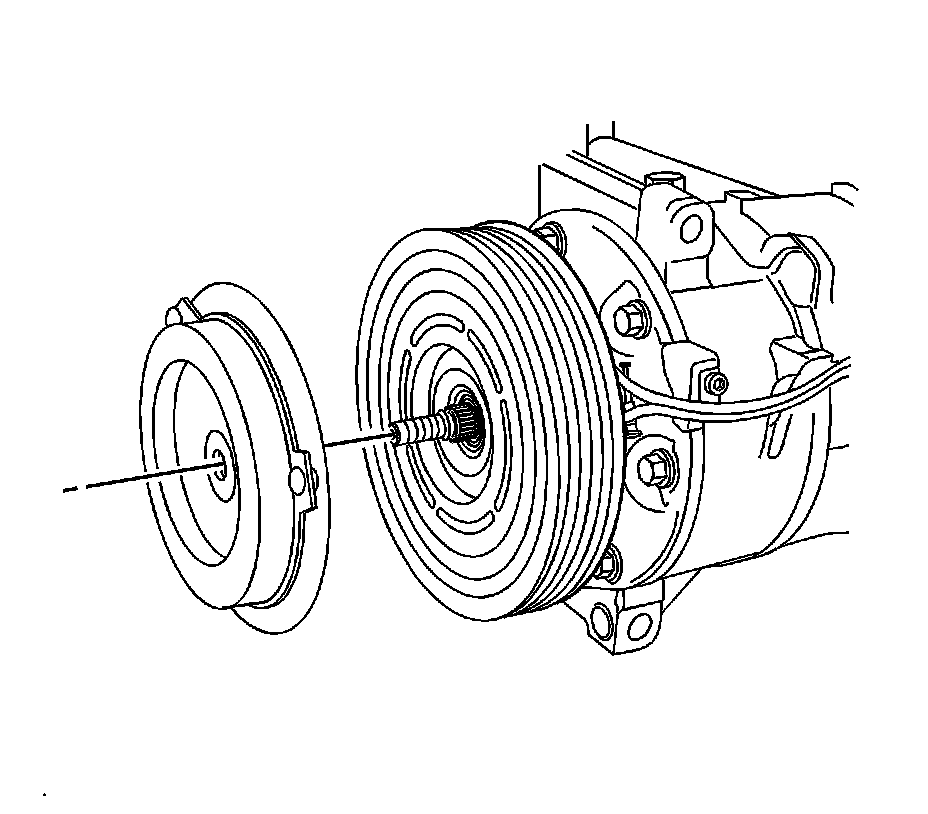 Note: Do not press on the A/C compressor shaft or compressor damage could occur.