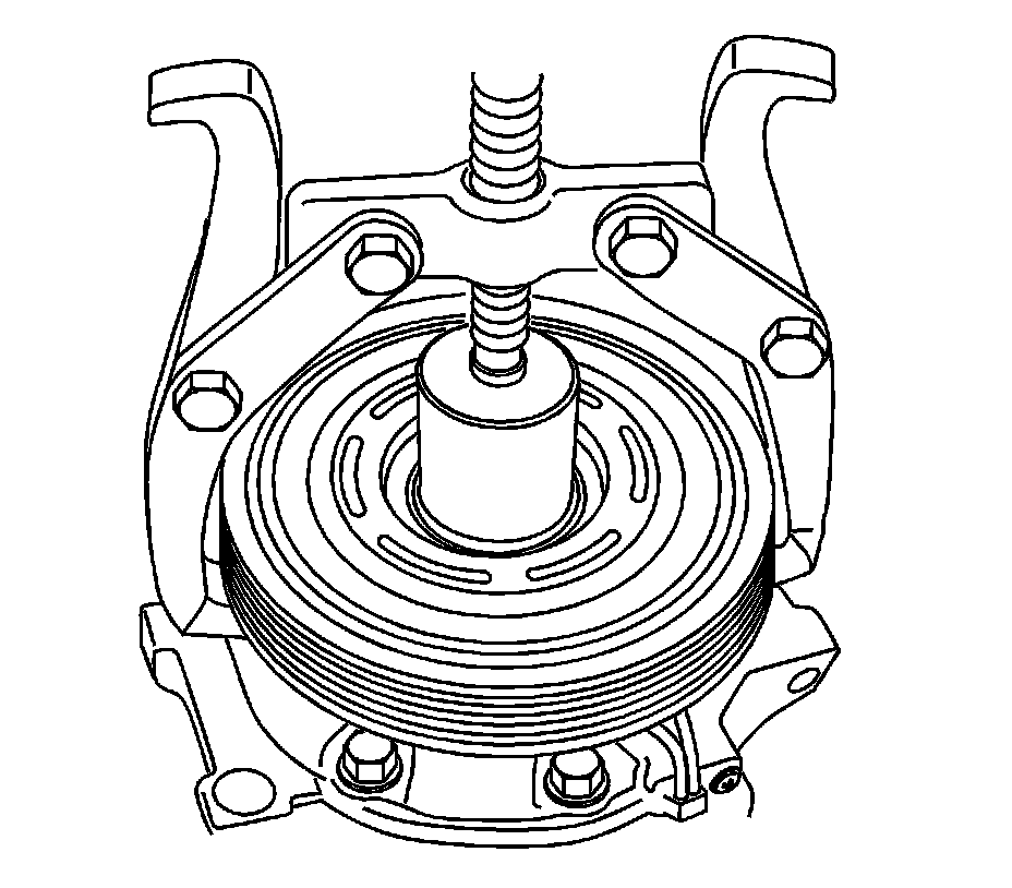 Note: Ensure that the clutch pulley snap ring is fully seated within the bore.