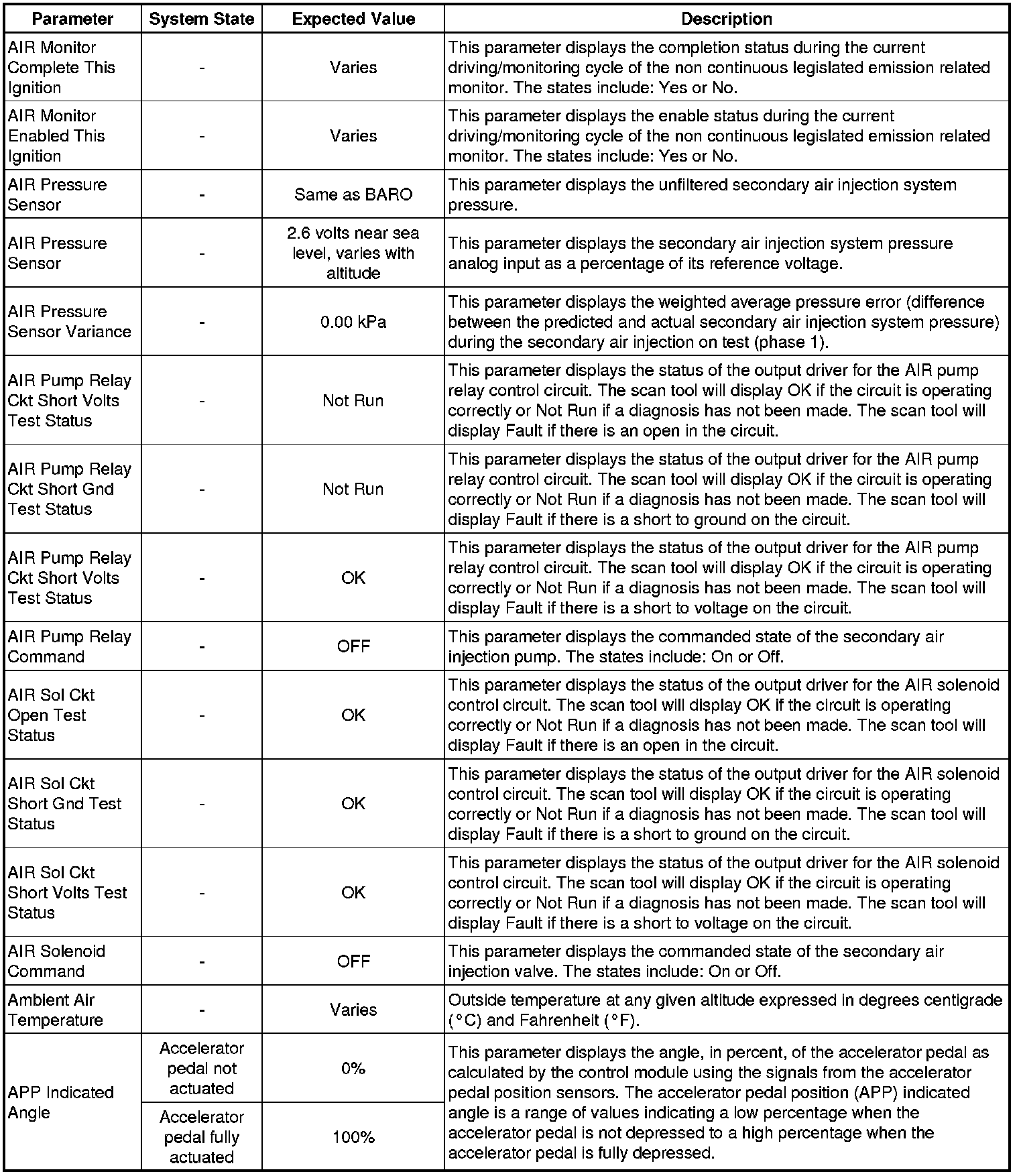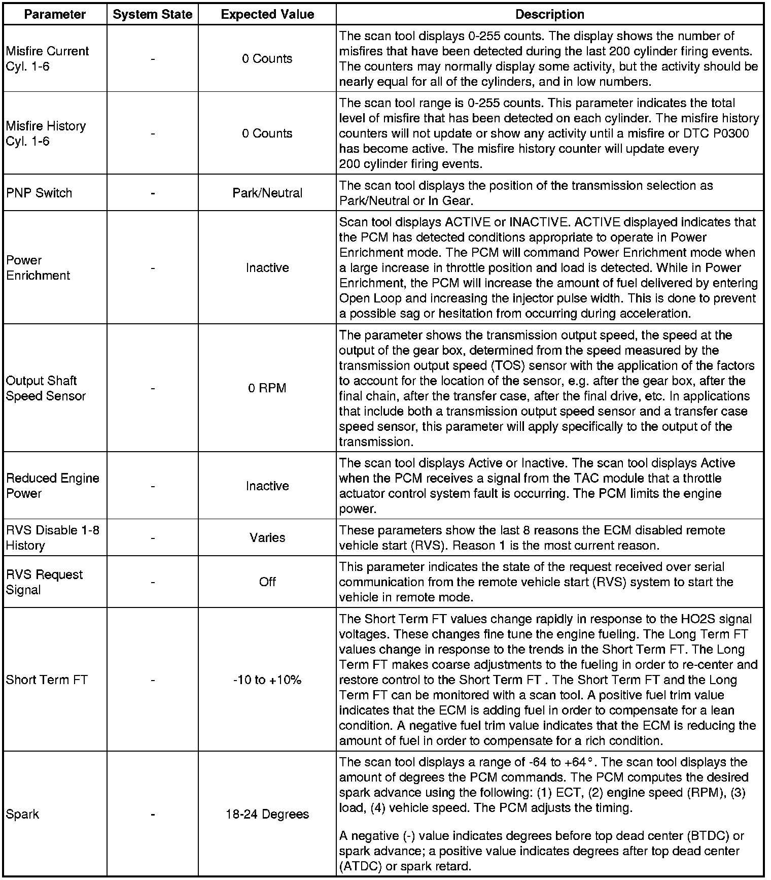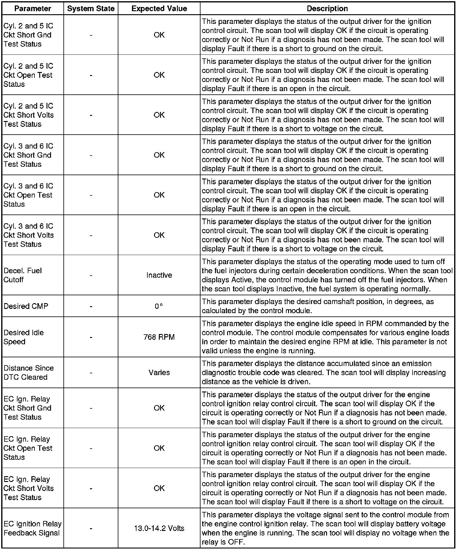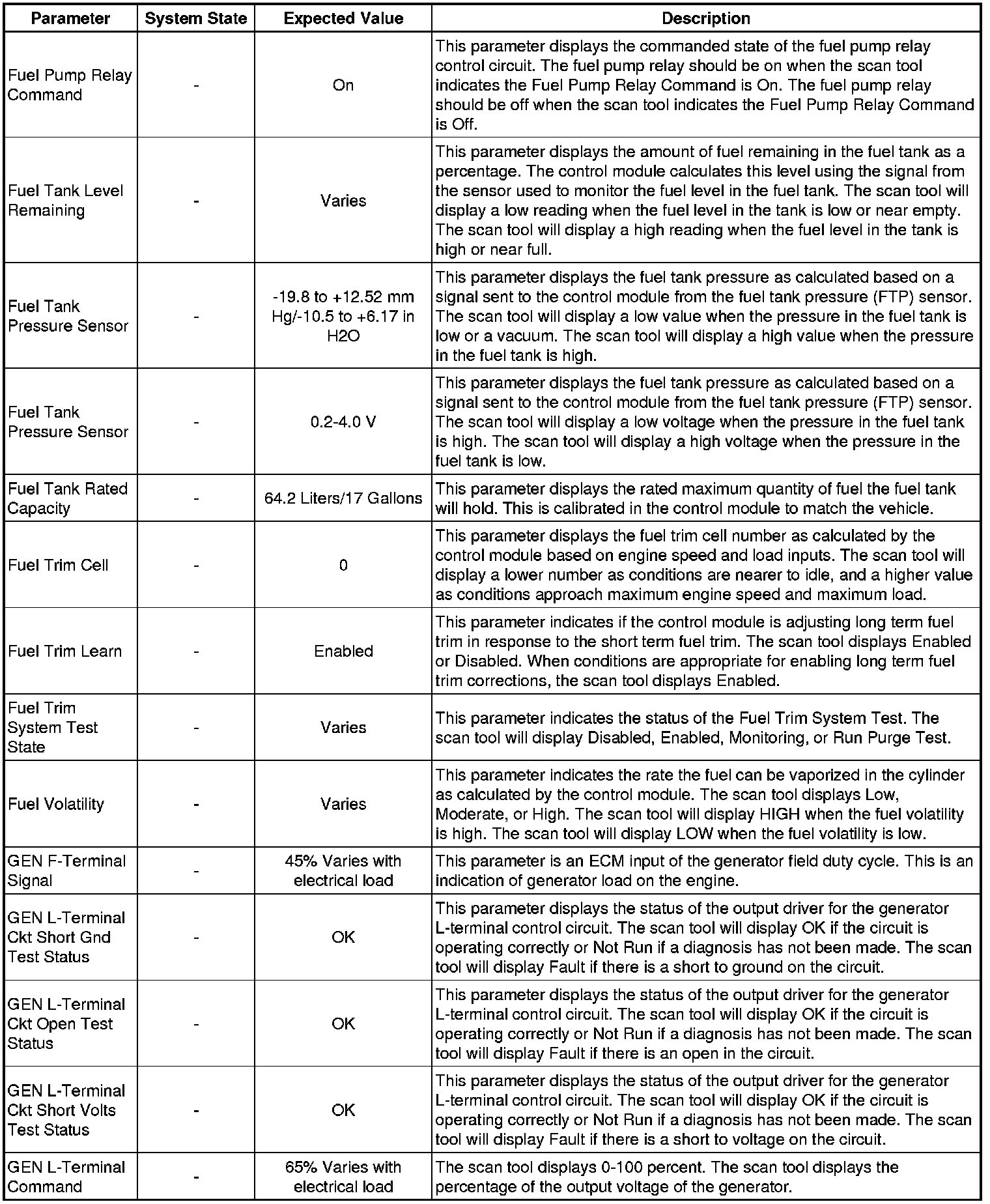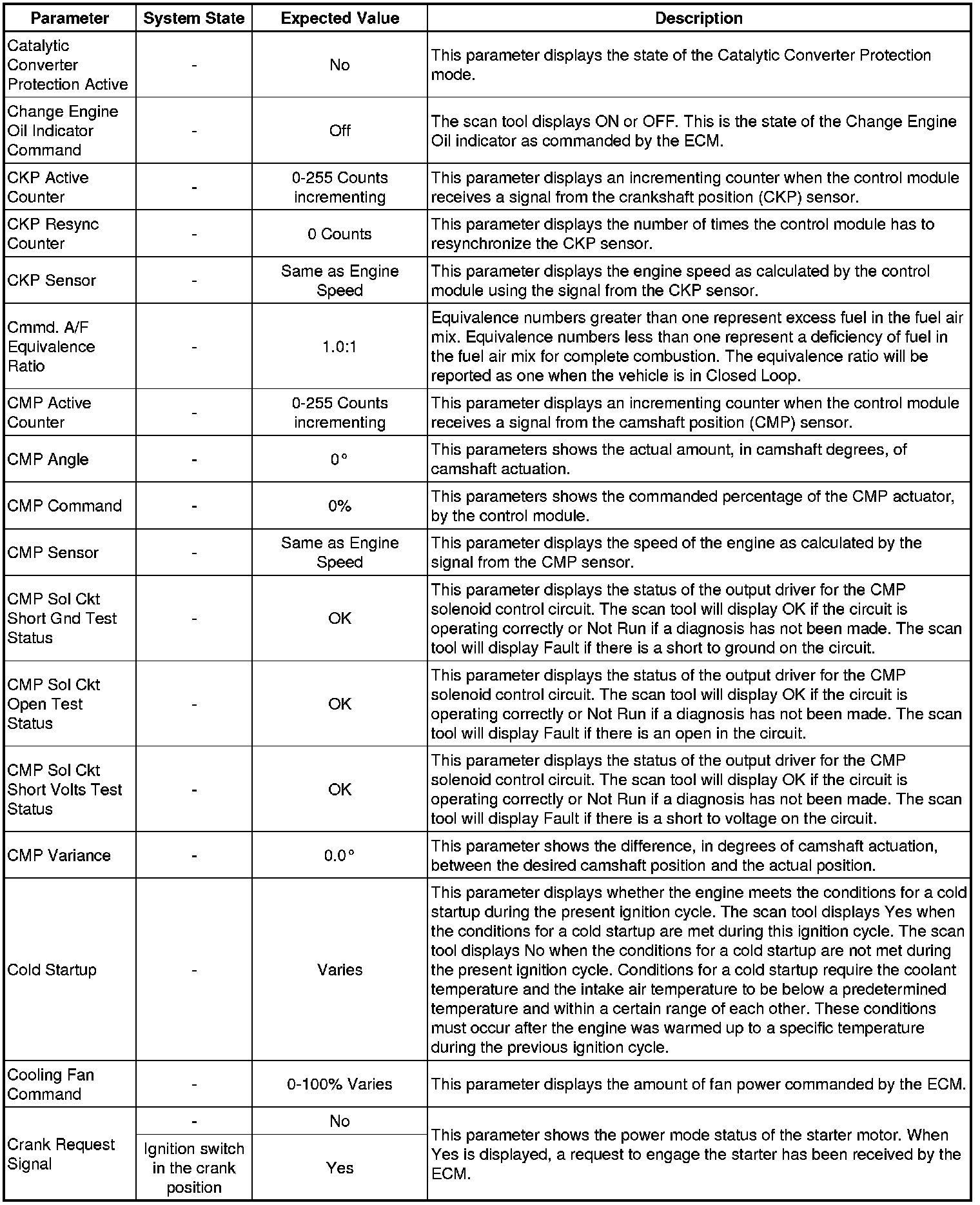 The Engine Control Module Scan Tool Data List contains all engine-related parameters that are available on the scan tool. The list is arranged in alphabetical order. A given parameter may appear in any one of the data lists, and in some cases may appear more than once, or in more than one data list in order to group certain related parameters together.